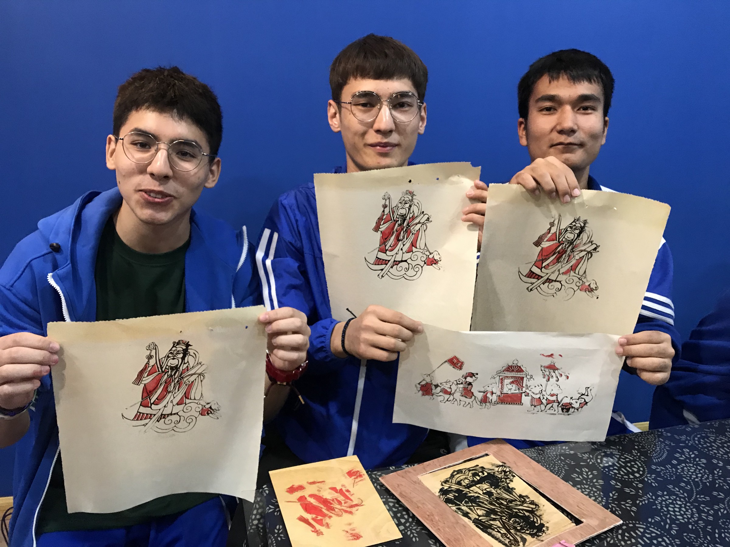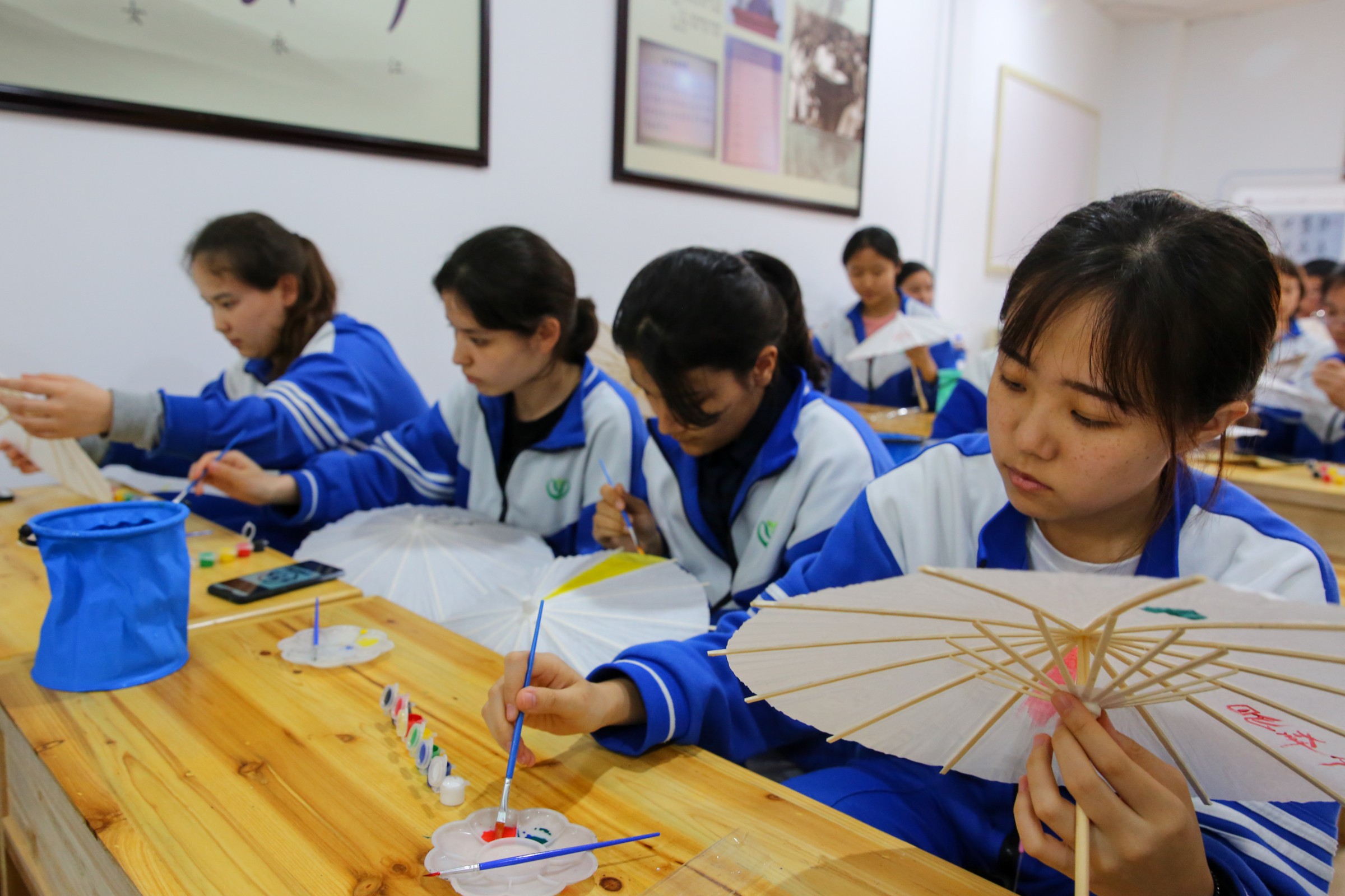 在张家界,学生们见识到了大自然鬼斧神工的黄龙洞和张家界陡峭高耸的山峰。也站在岳阳楼上,俯瞰浩淼洞庭,帆船点点、水波飘荡。在非遗实践中心,从毛家菜、黑茶、湘绣到女书、油纸伞……无一不吸引着学生。随后学生们在这里体验了如何给油纸伞上色和滩头年画的制作,大家充分发挥了自己的想象力,进行了一次现代元素与非遗文化的碰撞。