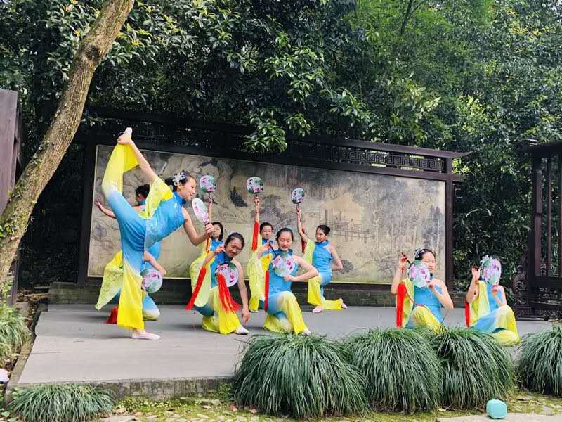 初一师生聚集在曲水流觞旁欣赏美丽的舞蹈,很多游客也驻足观看,掌声雷动。学生通过舞蹈了解江南的风情,又通过江南之旅更加了解了舞蹈别样的美。