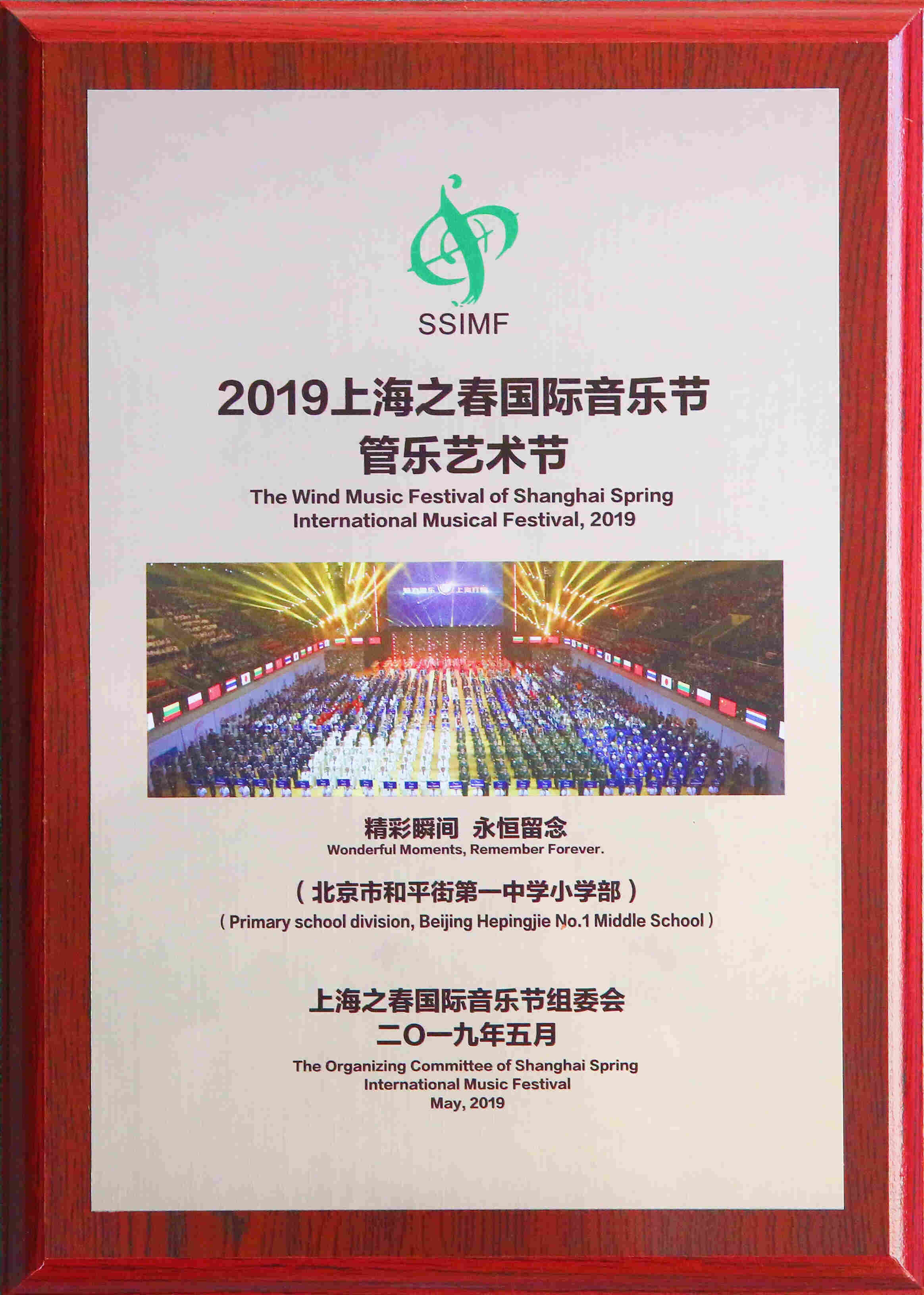 2019年5月 1 日,北京市和平街第一中学小学部“七彩乐韵”管乐团的老师和同学们参加了“中华号角—2019上海之春国际音乐节管乐艺术节暨‘中华杯’中国第十三届优秀管乐团队展演”活动。