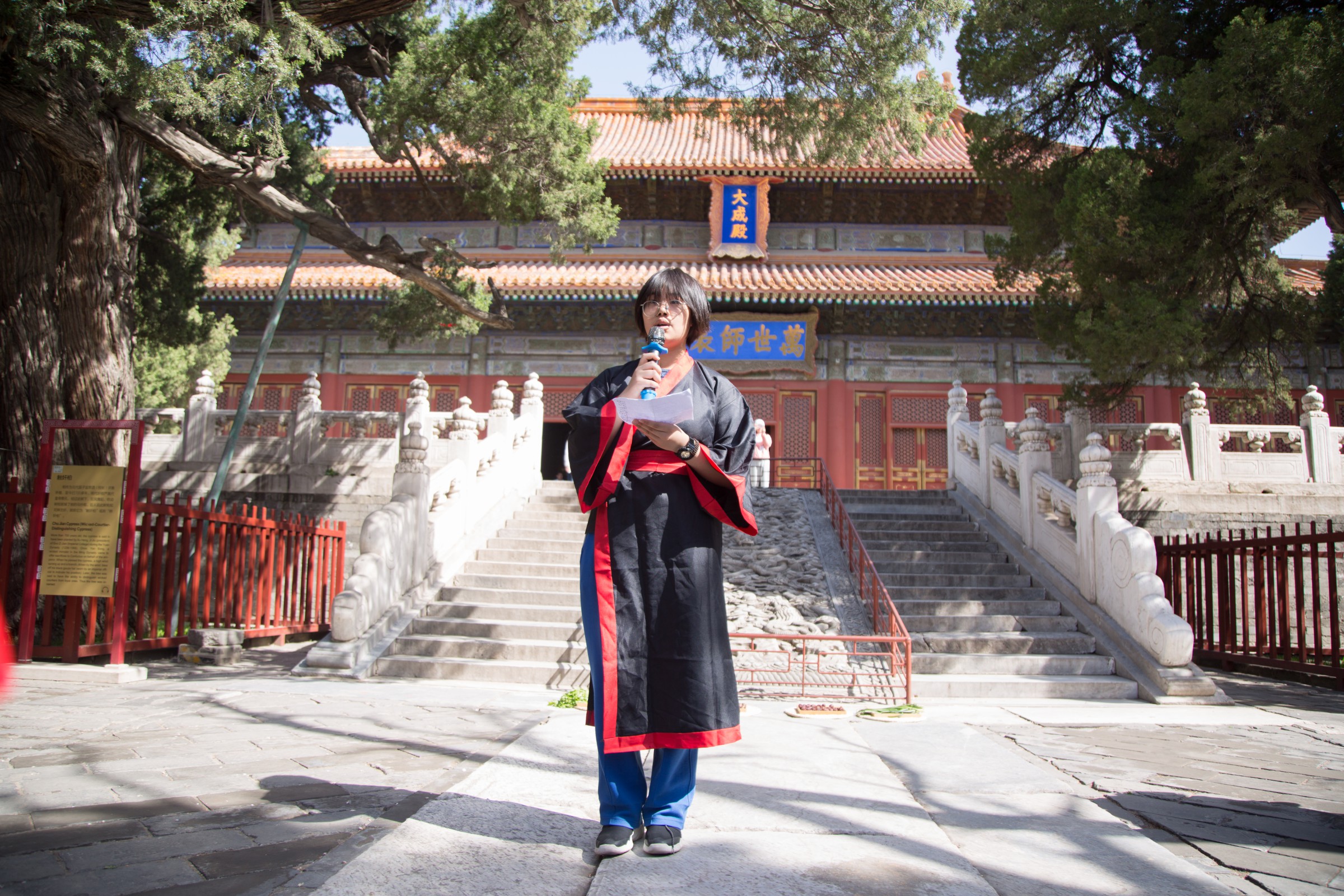 同学们徒步4公里多,有序地走到了国子监门前。伴随着清晨特有的凉爽与安谧,我们来到了孔庙和国子监博物馆。