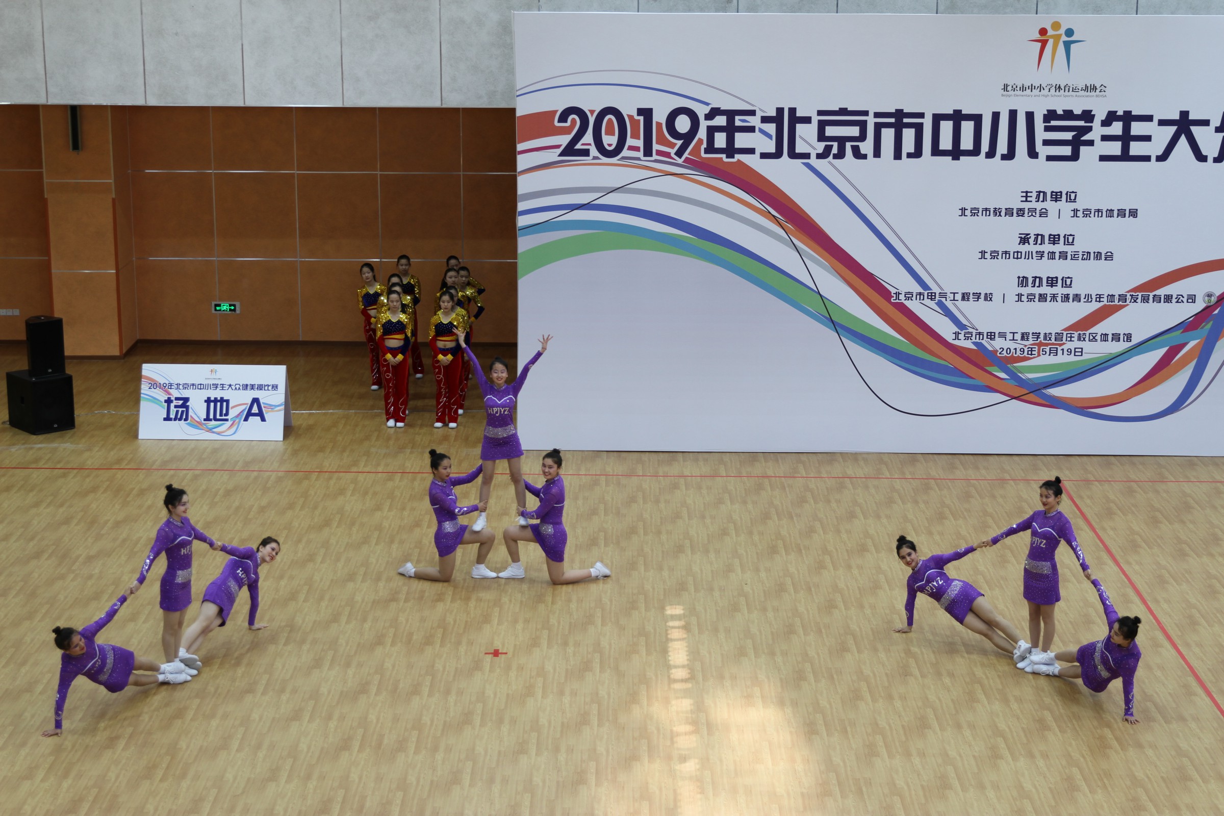我校高中健美操队在领队王军主任和教练沙金老师带领下于2019年5月18日、19日分别参加2019第十一届北京市体育大会健美操比赛、2019年北京市中小学生大众健美操比赛。在队员们的团结协作、齐心合力共同努力下获得优异的成绩!