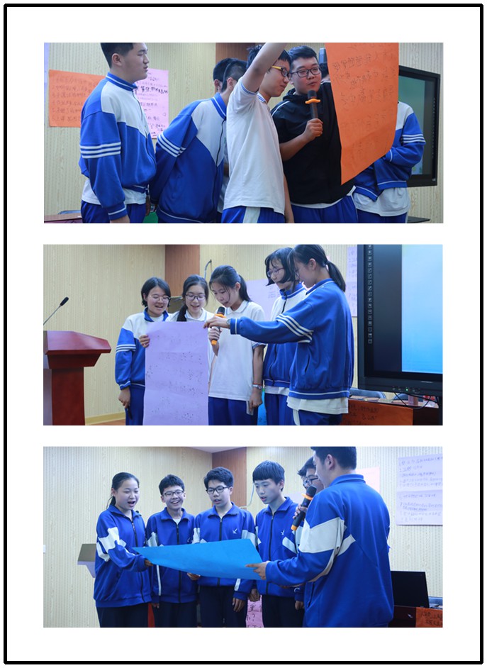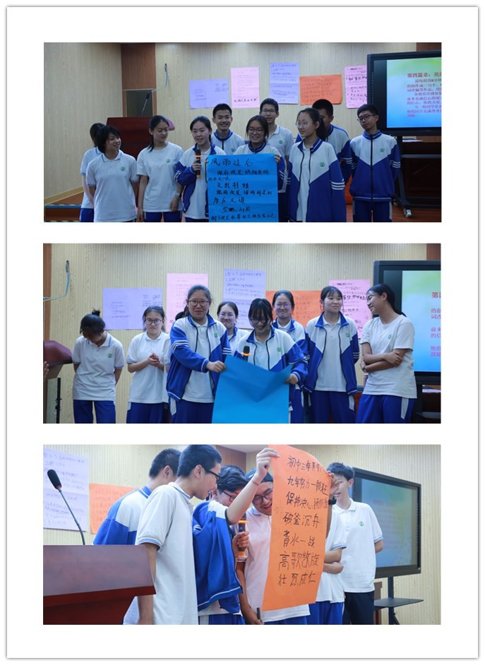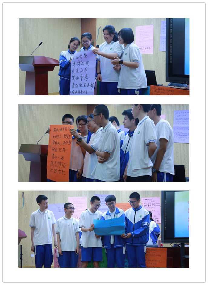 讲座伊始,武老师首先结合自身的中考经历谈了一些感想,引起了学生的共鸣,迅速拉近了与同学们的距离。随后从学生提出的现阶段面对的问题出发,引出讲座的主题,在将近一个小时四十多分钟的讲座中,细致地分析了中考来临前同学们的普遍心理和成因,既有理论指导,又有事实依据。通过生动有趣的方式跟同学们解释了压力是什么?压力会带来哪些正面或负面影响?有哪些有效的减压方法?在此基础上,武老师呼吁初三学生要学会有意识地转变观念、学会合理解压,养成良好习惯,“每天都有所为”,开始有效行动,停下无效动作。最后,学生分组创编了三句半,每组同学都带着激情大声朗读,表达出中考必胜的信心。