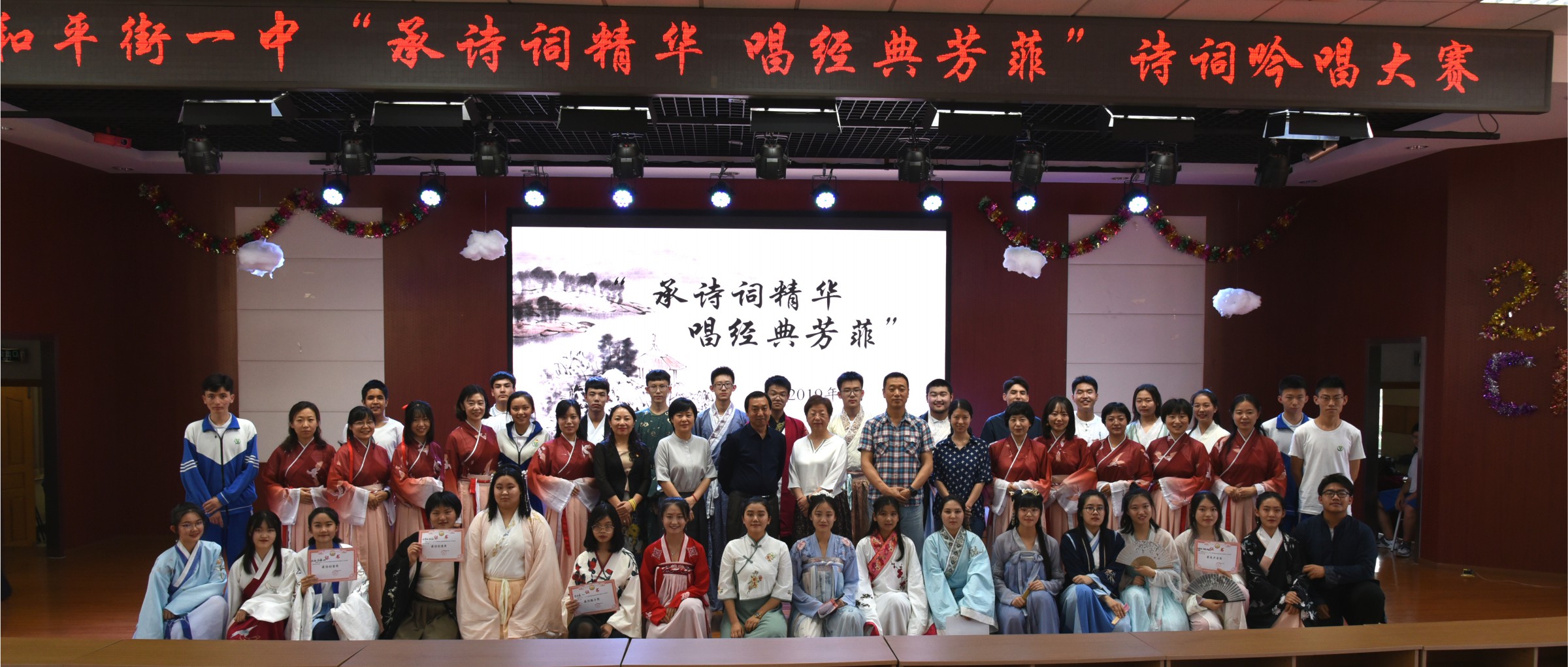 中华诗文浩若烟海,华夏文明光辉灿烂。2019年5月24日,北京市和平街第一中学莲葩园校区,举办了以“承诗词精华,唱经典芳菲”为主题的吟唱大赛。为迎接建国七十周年献礼。此次比赛在校区主管领导杜鹏副校长以及各部门领导的大力支持下,由语文教研组精心准备策划,隆重推出一台精彩纷呈的视听盛宴。并受到了全校师生的大力支持和一致好评。