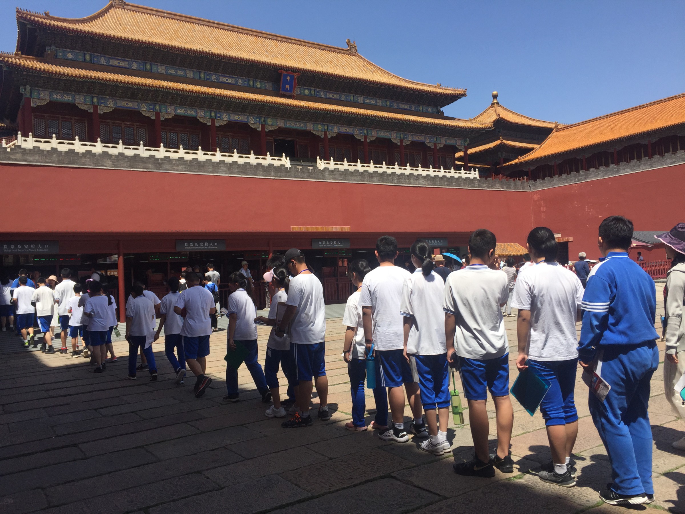 为培养青少年学生的文化自信、提升中华优秀传统文化的学习能力、实践能力和感知能力,拓宽“三爱三节”渠道和学生视野,把爱国教育由校内延伸到校外。和平街一中充分利用故宫博物院资源优势,5月28日下午,和平街初中校区全体学生、教职工、云南挂职干部,物业、保安、餐厅代表近500人怀着饱满的热情,踏上了前往故宫的路程。