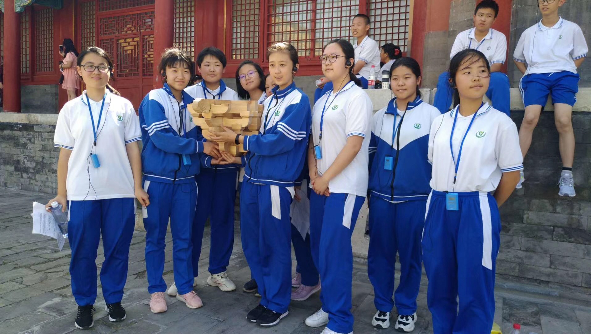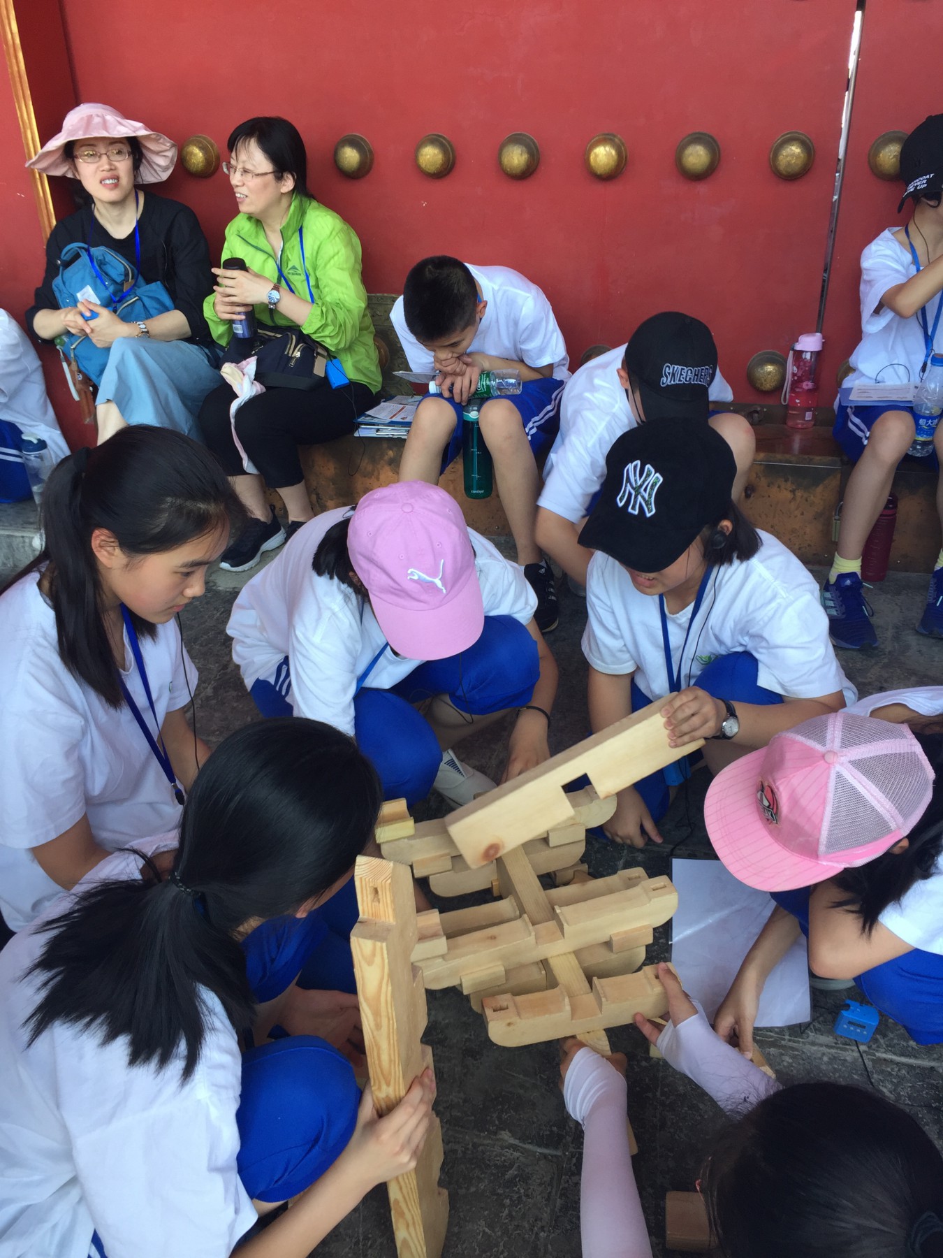 从午门进入故宫里,踏上铺着青砖的大道上,远远望去,是那连绵无尽的锈红色宫墙,是那千万间金碧辉煌的宫殿,是那藏在宫墙里的源远流长的六百年历史。一座座经历百年风雨却依然矗立于此的殿宇倾倒,红色的柱子支撑着宫殿,黄色的琉璃瓦展现着皇家的威望,屋顶的四角都精致的刻着龙的九子,个个神采奕奕、腾跃啸傲,形态高贵的瓷器,光泽依旧,光彩喧天我被这一座座故宫的金碧辉煌的宏伟建筑吸引眼球;沿着中轴线前进,漫步在这宏伟的宫墙,穿梭在一座座殿宇楼阁里,感受着帝王的威严,嫔妃的寂寞,百姓的仰望。在太和殿里领略皇家的威严,在殿宇楼阁中团结一致拼斗拱飞檐,在御花园里欣赏百花齐放的美景。全体学生细致参观了故宫博物院的古建筑,认真学习了故宫在中国传统文化、建筑风格、历史传承、艺术体现等多方面的知识,深刻地感受到了中国传统文化的博大精深,大家为我国古代精湛的工艺水平和追求完美的工匠精神所折服。初二2班金祺然同学是第16次来到故宫,他兴奋地对老师说:这一次学校组织到故宫尤其不同,一是有辅导员老师专业细致的讲解,二是有年级同伴间的交流互动,三是有斗拱的拼插体验课程,都留下了深刻印象!