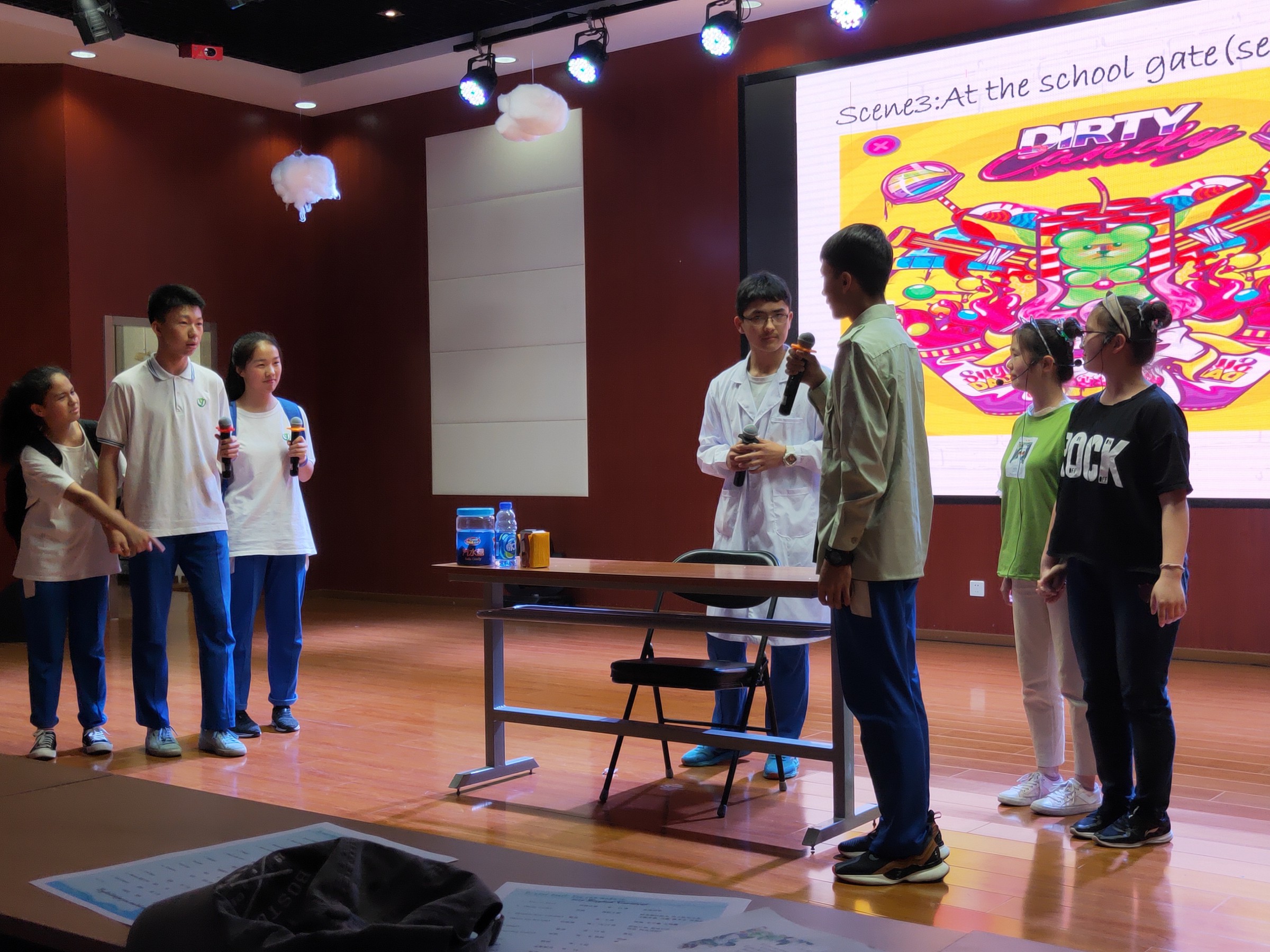 预科年级的《Dirty Candy 》、《Zootopia》和英语社团的《Personality Potion》通过精彩纷呈的舞台表演,在提高同学们英语兴趣的同时,传达着正确的价值观、健康的审美情趣和道德情感。比如《Personality Potion》告诉我们战胜自己就是战胜一切的真理,没有什么神奇的性格药水,改变的只是心态而已。台上精彩绝伦的表演中不可或缺的是演员们在台下反复排练的剧本,服装道具的细微准备,以及平时在课上练习扎实的发音。
