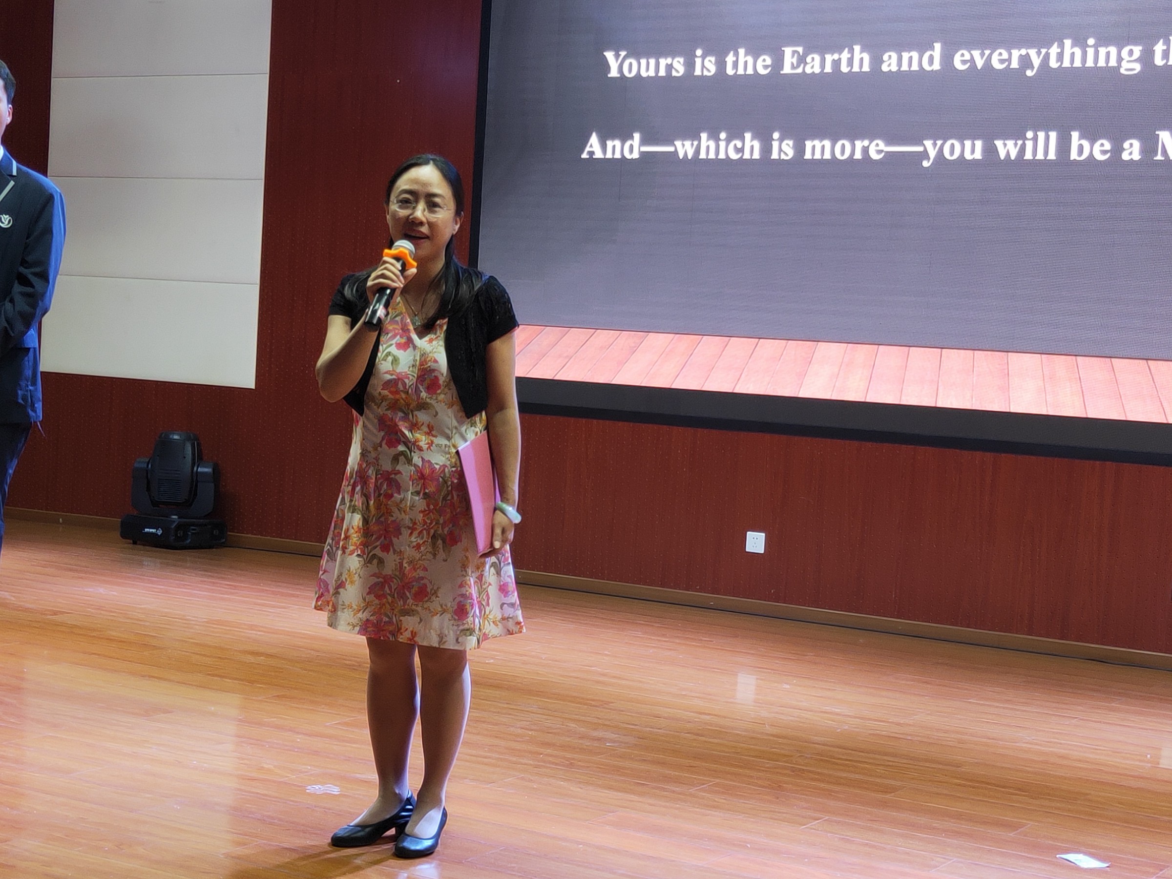 在活动的最后,教务处副主任刘堃用发表了振奋人心的英文演讲:以自己为榜样激励我们努力学习,用英语架起沟通世界的桥梁。英语教研组长陶曲萍老师对本次活动进行总结:英语不仅让我们了解世界,更能让我们为中国发声,让世界听见中国的声音。