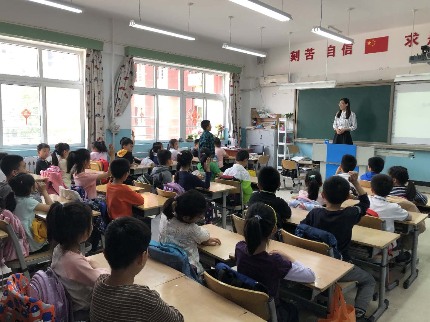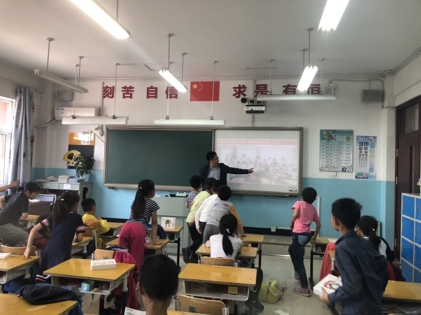 课上,孩子们聚精会神地听,踊跃体验,争先恐后地发表自己的见解,下课铃声响,同学们还意犹未尽!