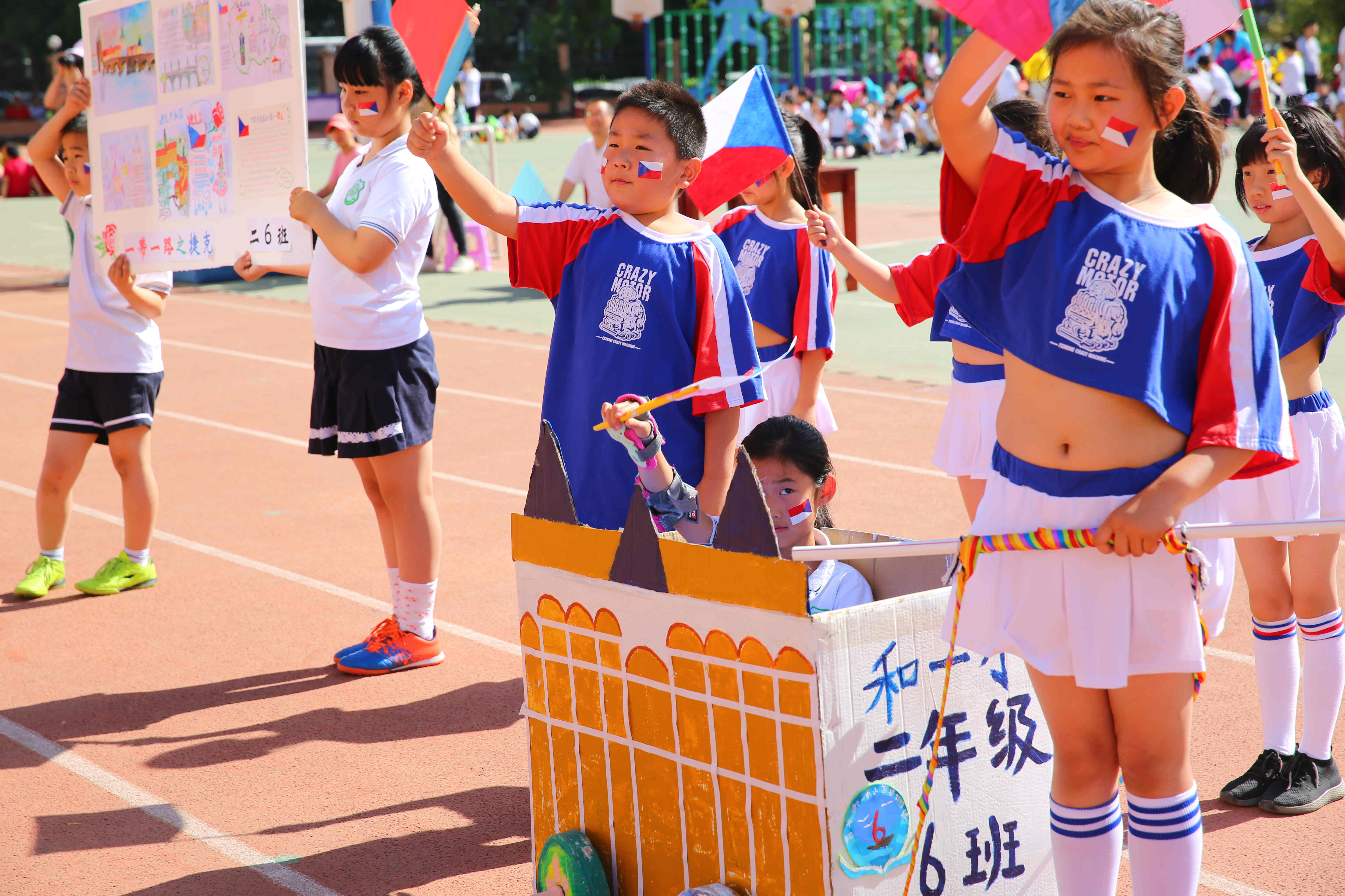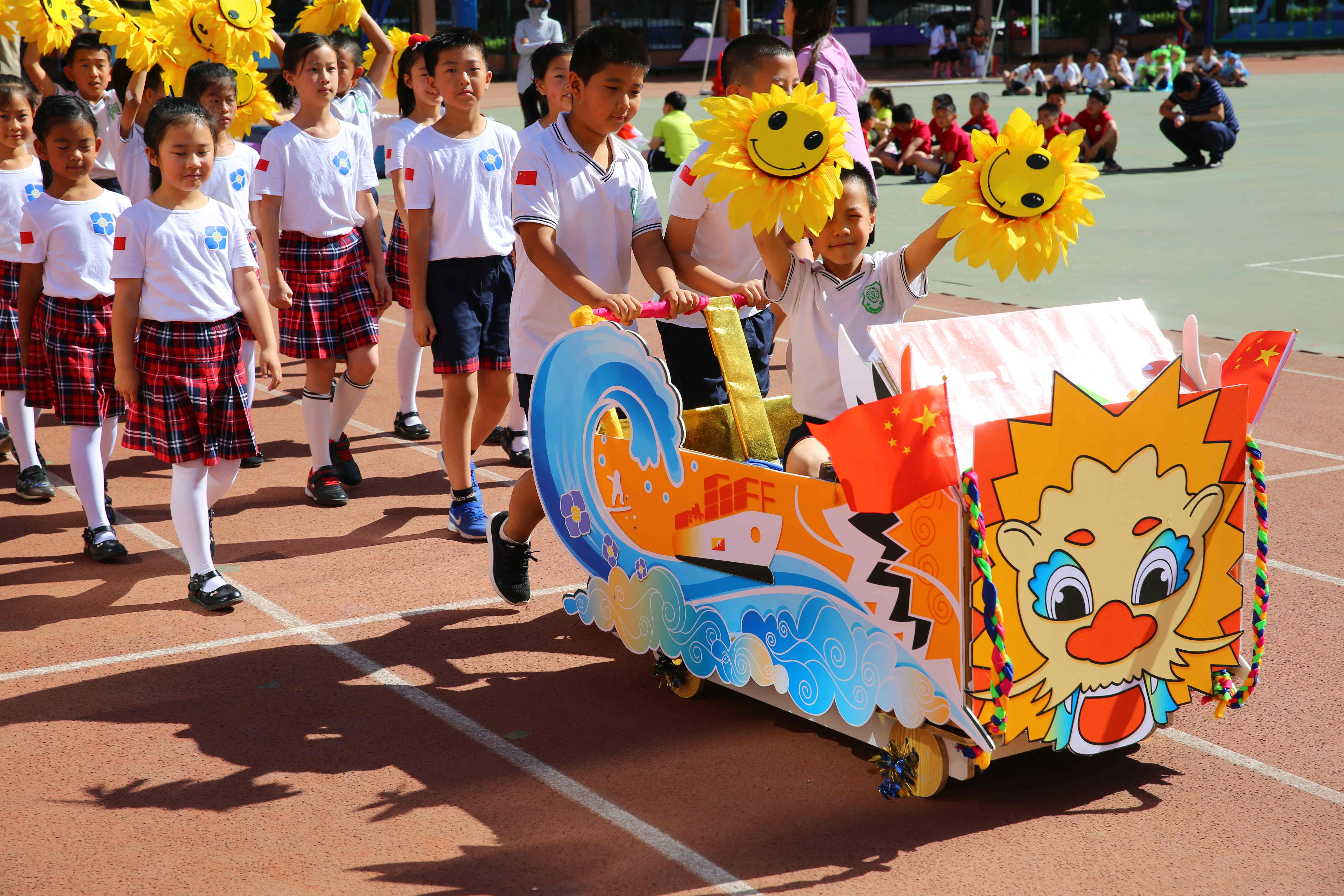 嘉年华活动以彩车巡游为主体,设置了具有“一带一路”特色的配套活动,如“小车载人行进竞速比赛”、“模拟贸易交流”,在活动中孩子们了解了“一带一路”的知识,了解到所选择国家的文化,制作具有国家特色的花车和手工作品,创编舞蹈表演,撰写中英文解说词,在竞技环节中磨炼意志,在贸易环节中感受头脑风暴和团队合作。在整体活动中了解祖国的繁荣强大,培养爱国爱校意识。