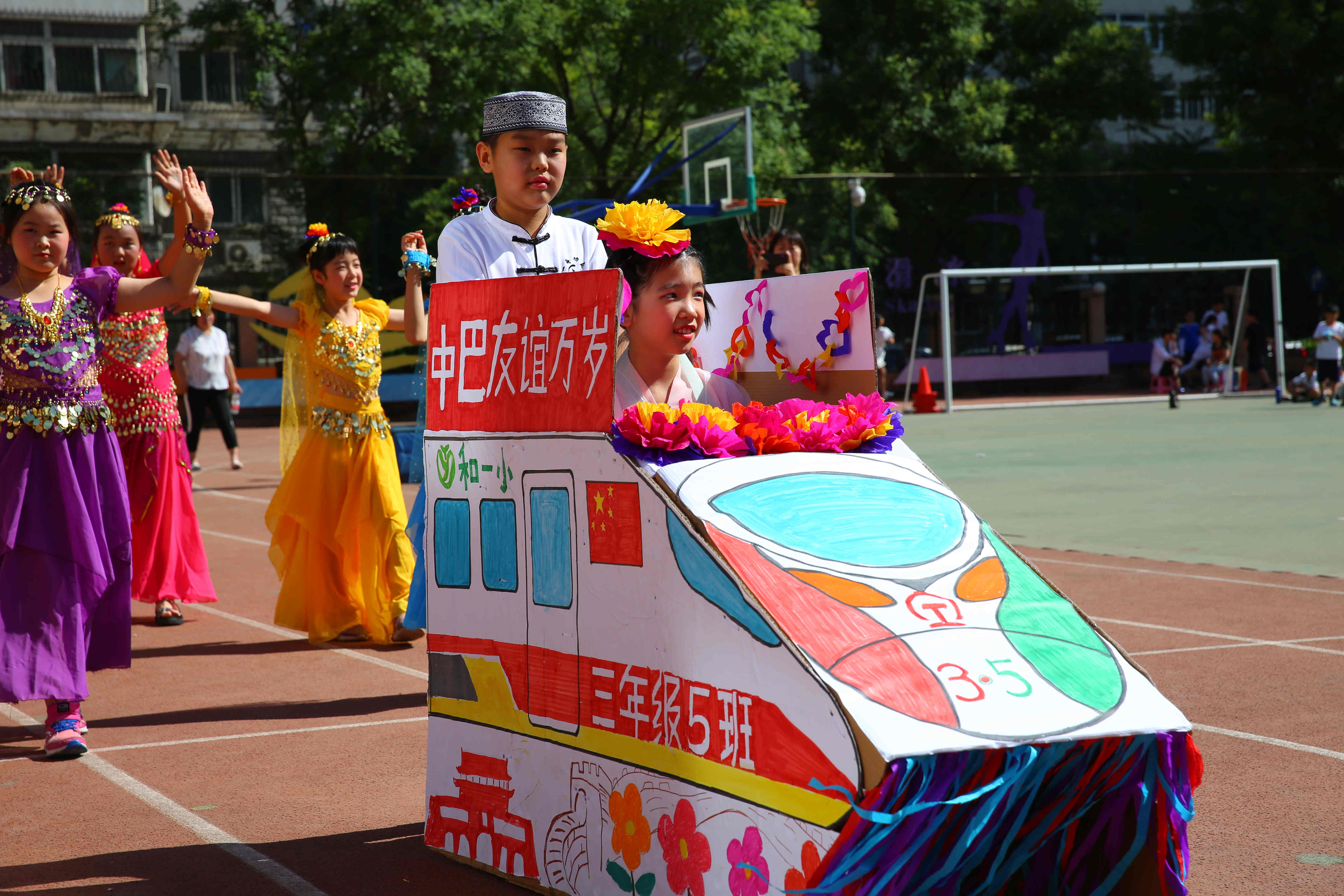 “斯里兰卡”、“波兰”、“马尔代夫”等等很多“国家”的“使者们”今天着盛装、踏彩车欢欢喜喜地走进了美丽的和平街一中清友园校区,他们的到来吸引了全校师生的关注。