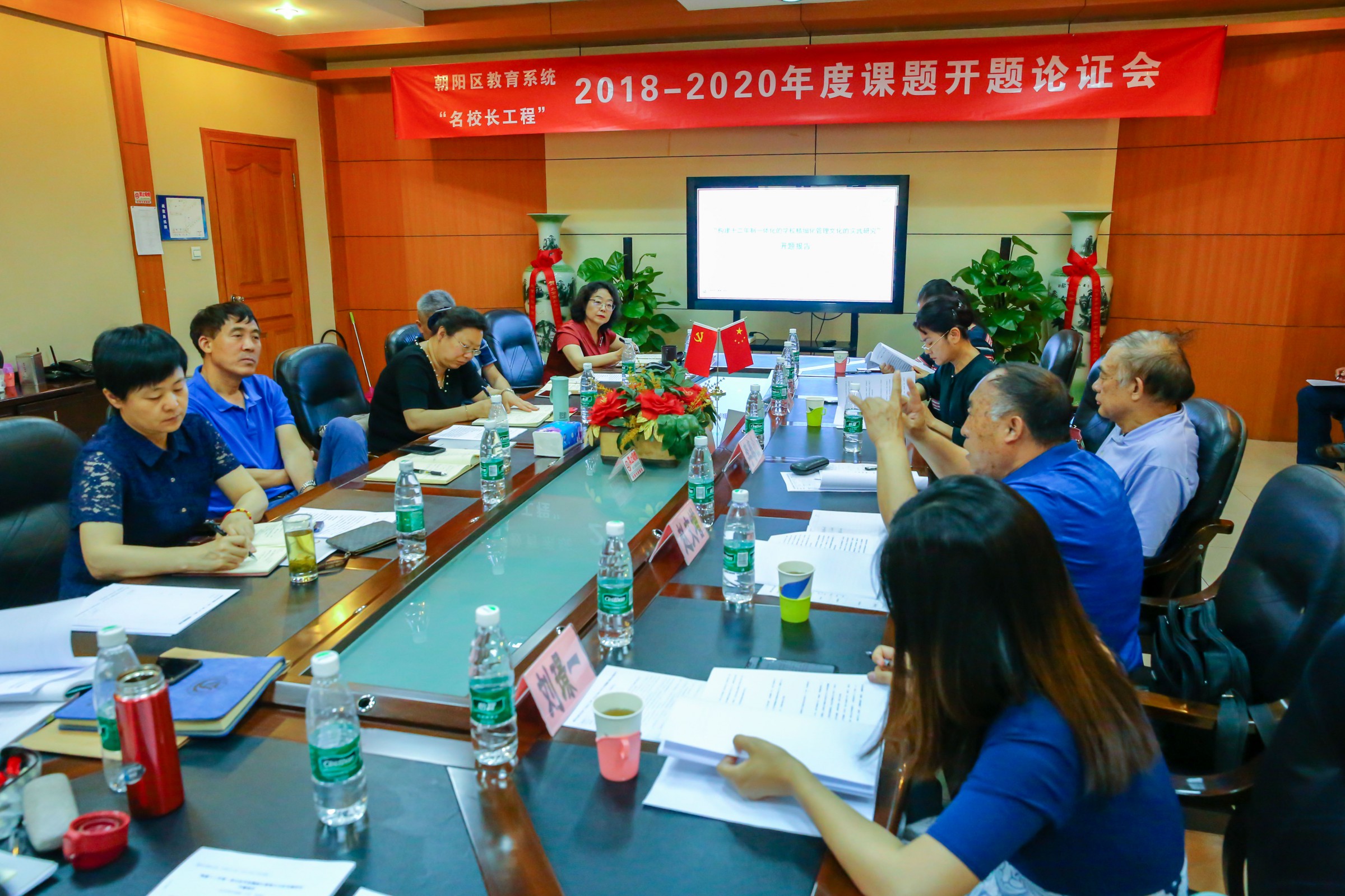 2019年06月03日下午,北京市和平街第一中学陈秀珍校长主持的朝阳区教育系统2018—2020“名校长工程”课题开题论证会在北苑莲葩园校区召开。