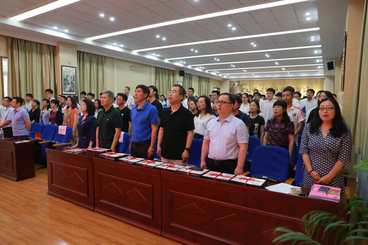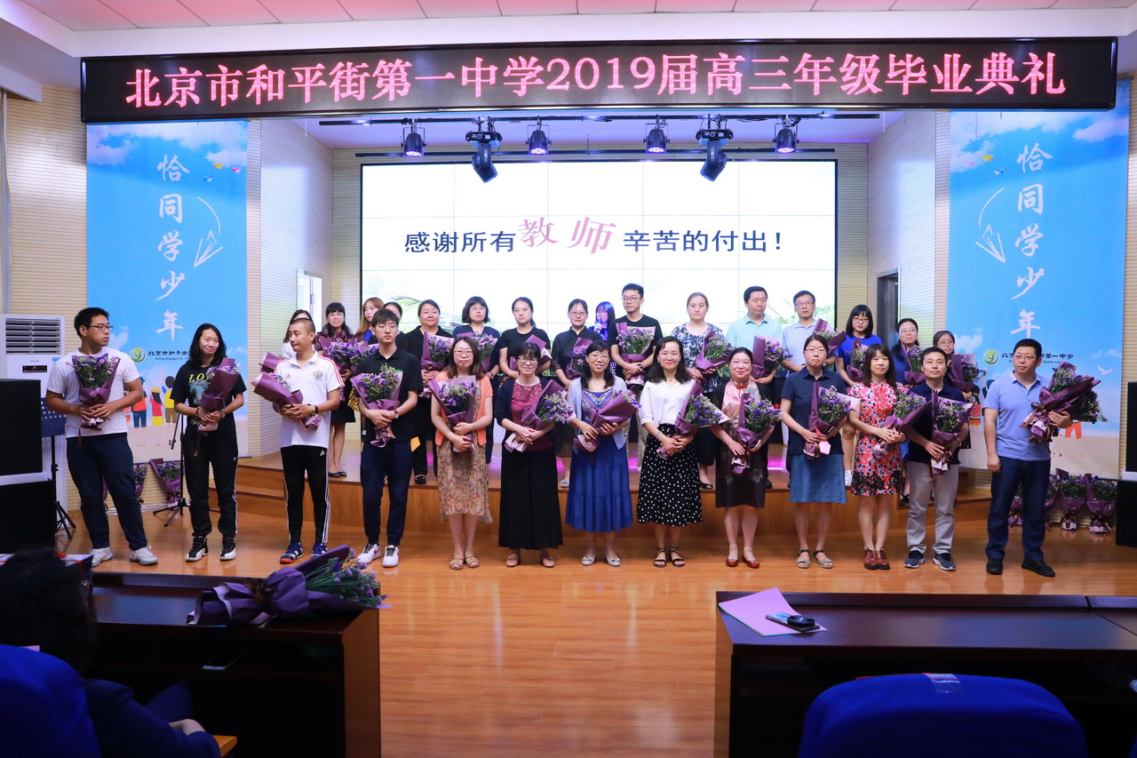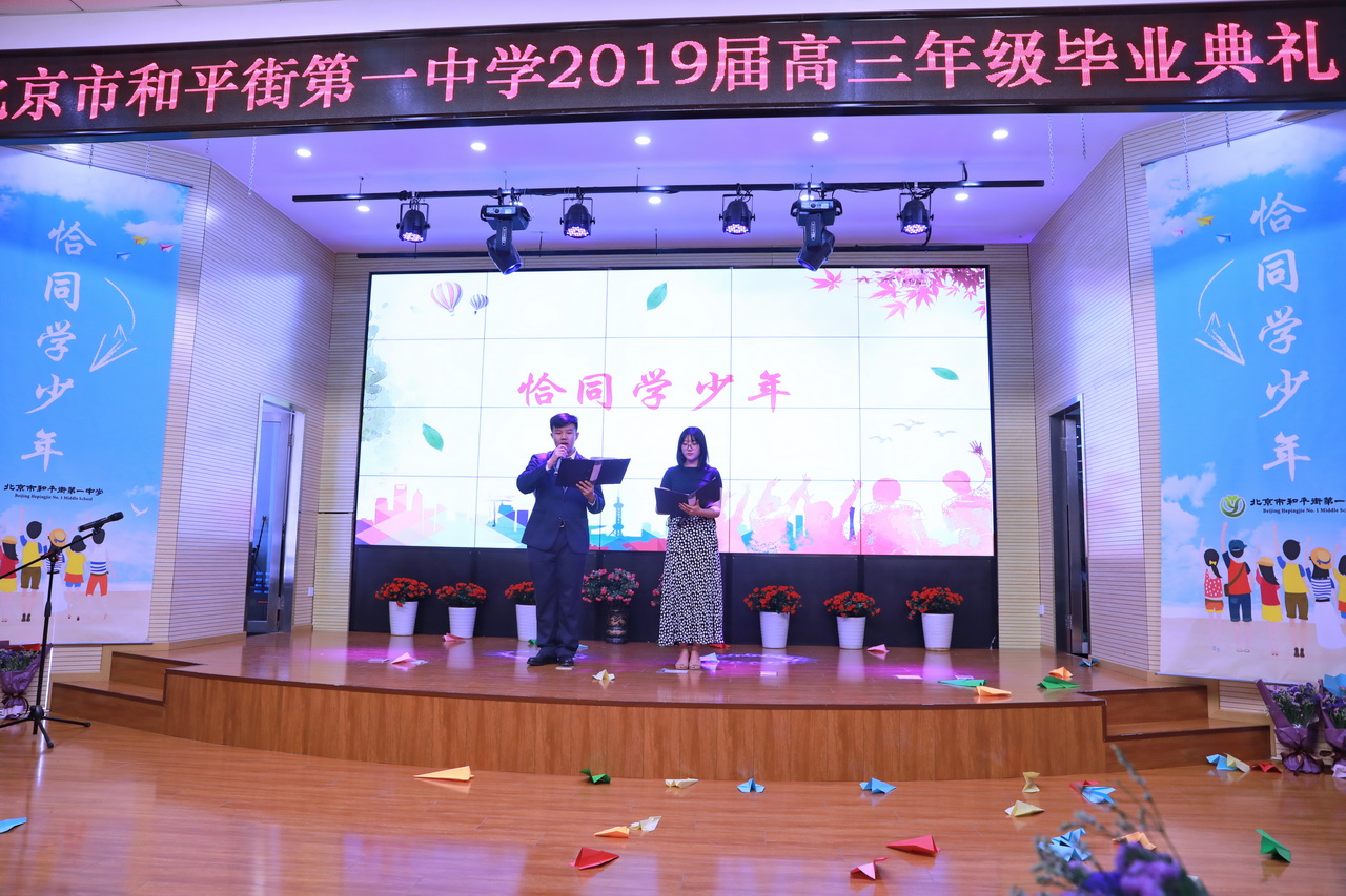 仲夏时节,朵朵花儿娇艳。校园的夏,格外光影动人。为了引导学生明晰人生的意义和即将肩负的社会责任,感恩家长与学校在成长道路上给予的关爱与教诲,为远大人生理想,为伟大中国梦而不断奋斗,2019年6月10日,和平街一中和平街高中校区隆重举行了以“恰同学少年”为主题的2019届高三学生毕业典礼。陈秀珍校长、李兵书记、曹成勇副校长、张习文校长助理、李春光主任,高三年级组长白林老师以及全体班主任出席了典礼。