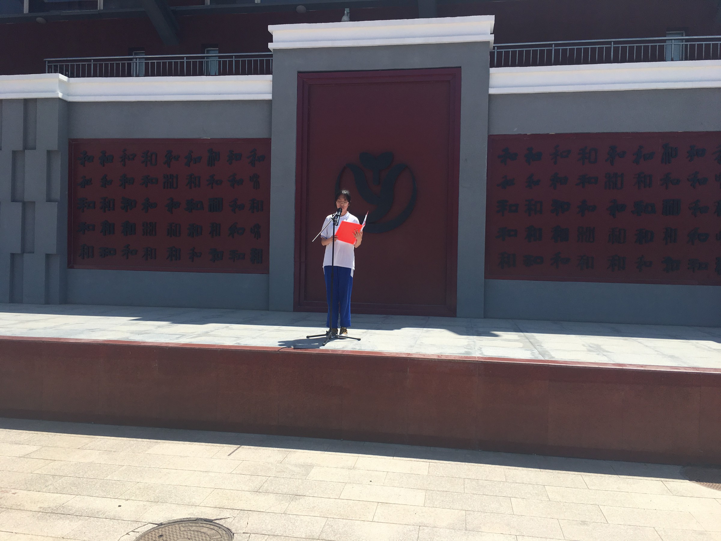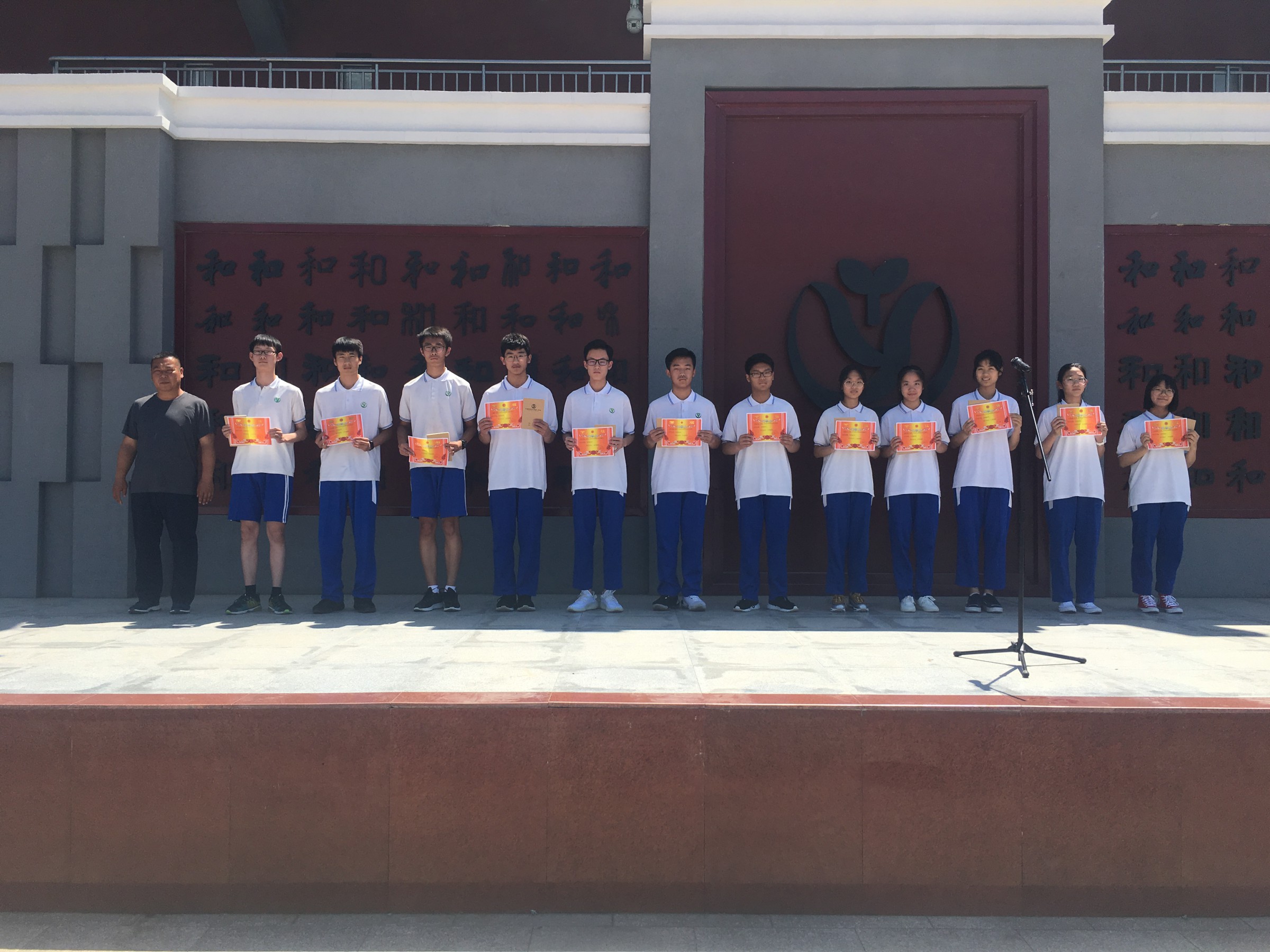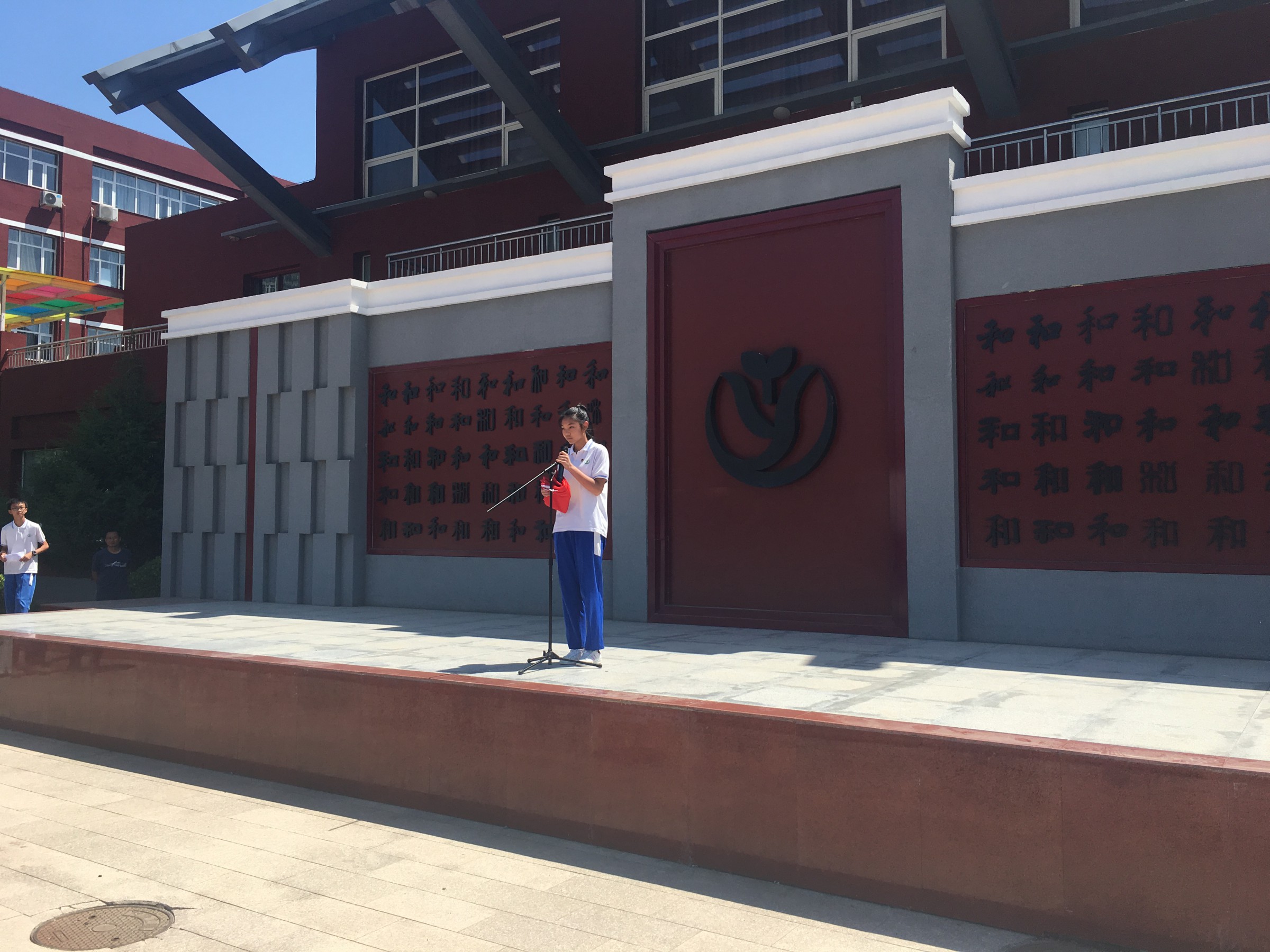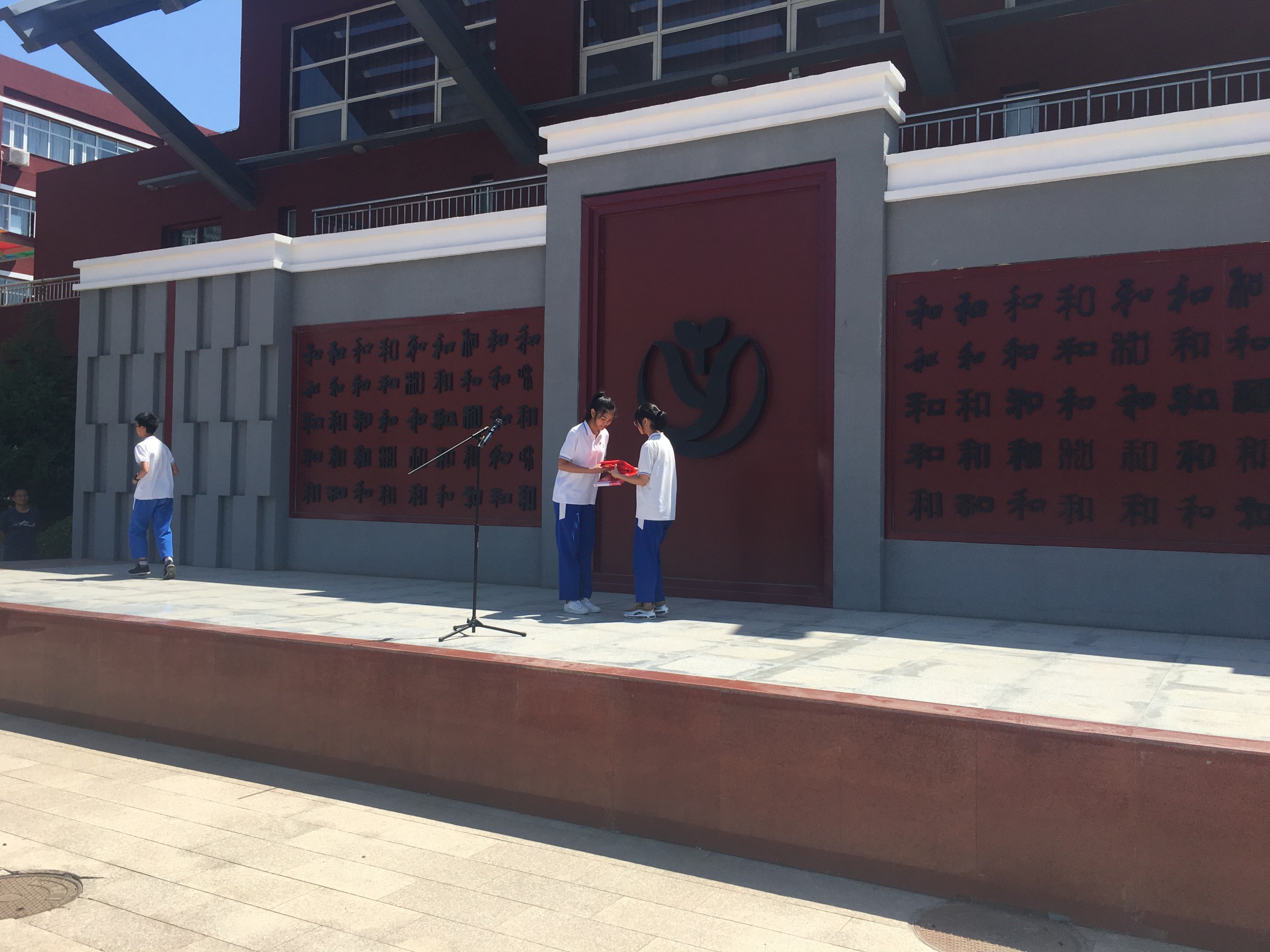 在嘹亮的国歌声中,在和一师生地注目下,初三年级国旗班成员最后一次在校园里扬起国旗,迈着铿锵有力的步伐,缓缓走向旗杆,认真的操作着早已烂熟于心的动作,最终圆满地完成了自己最后的使命。初三(7)班的何佳欣代表老队员发言并把国旗交到新队长初二(7)班的王雨佳手里。这意味着国旗班的重担将落在新一届的成员身上。张东辉主任为初三年级国旗班成员颁发奖状和纪念品。
