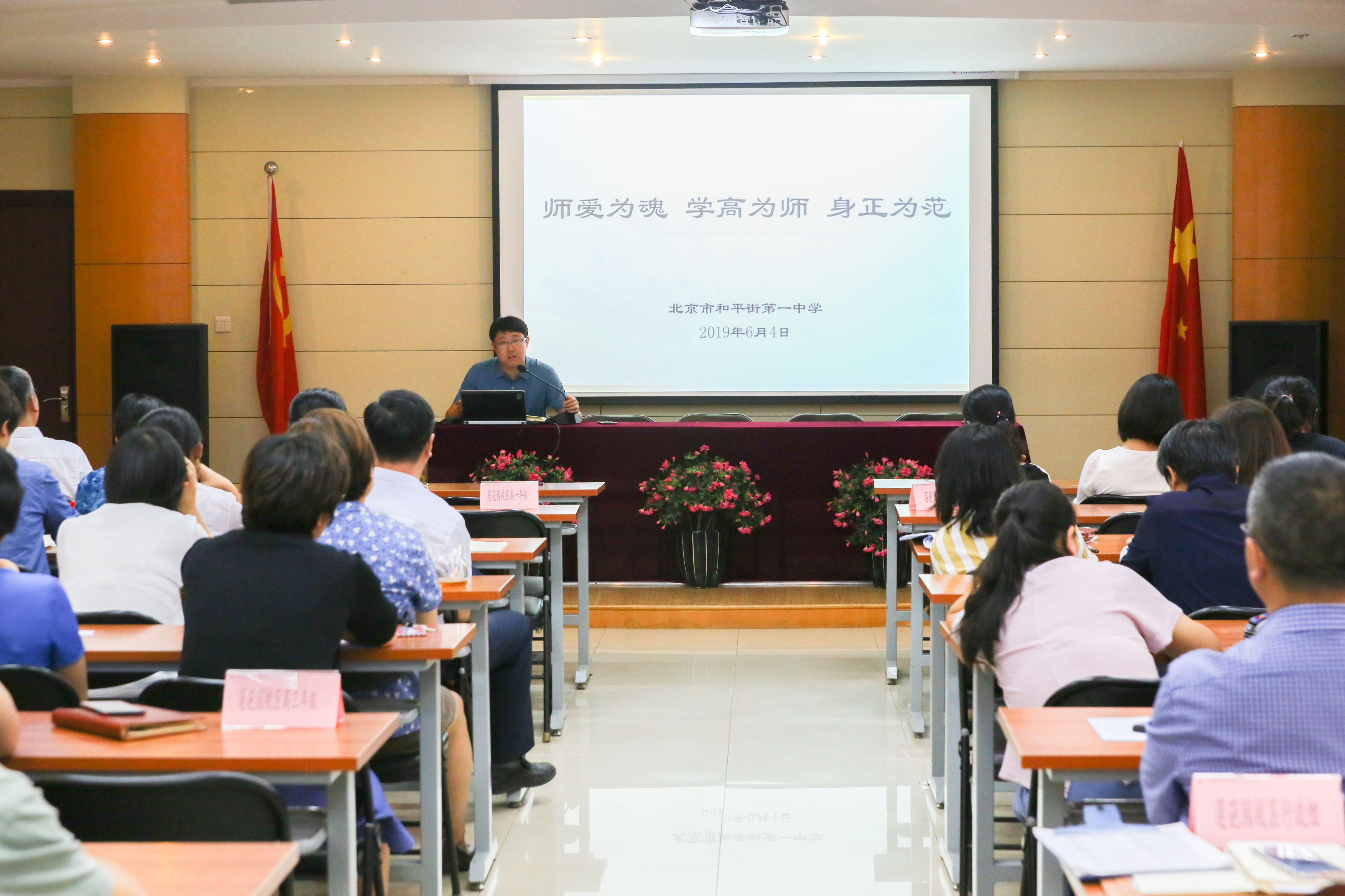 2019年6月11日,和平街一中莲葩园开展师德建设活动,拉开本学期师德建设序幕。