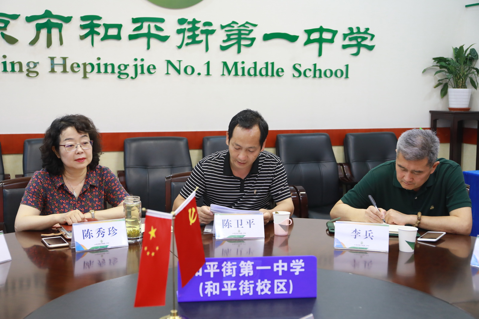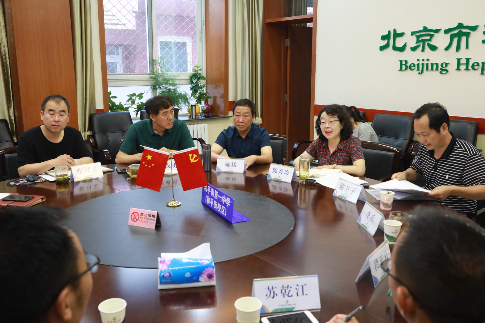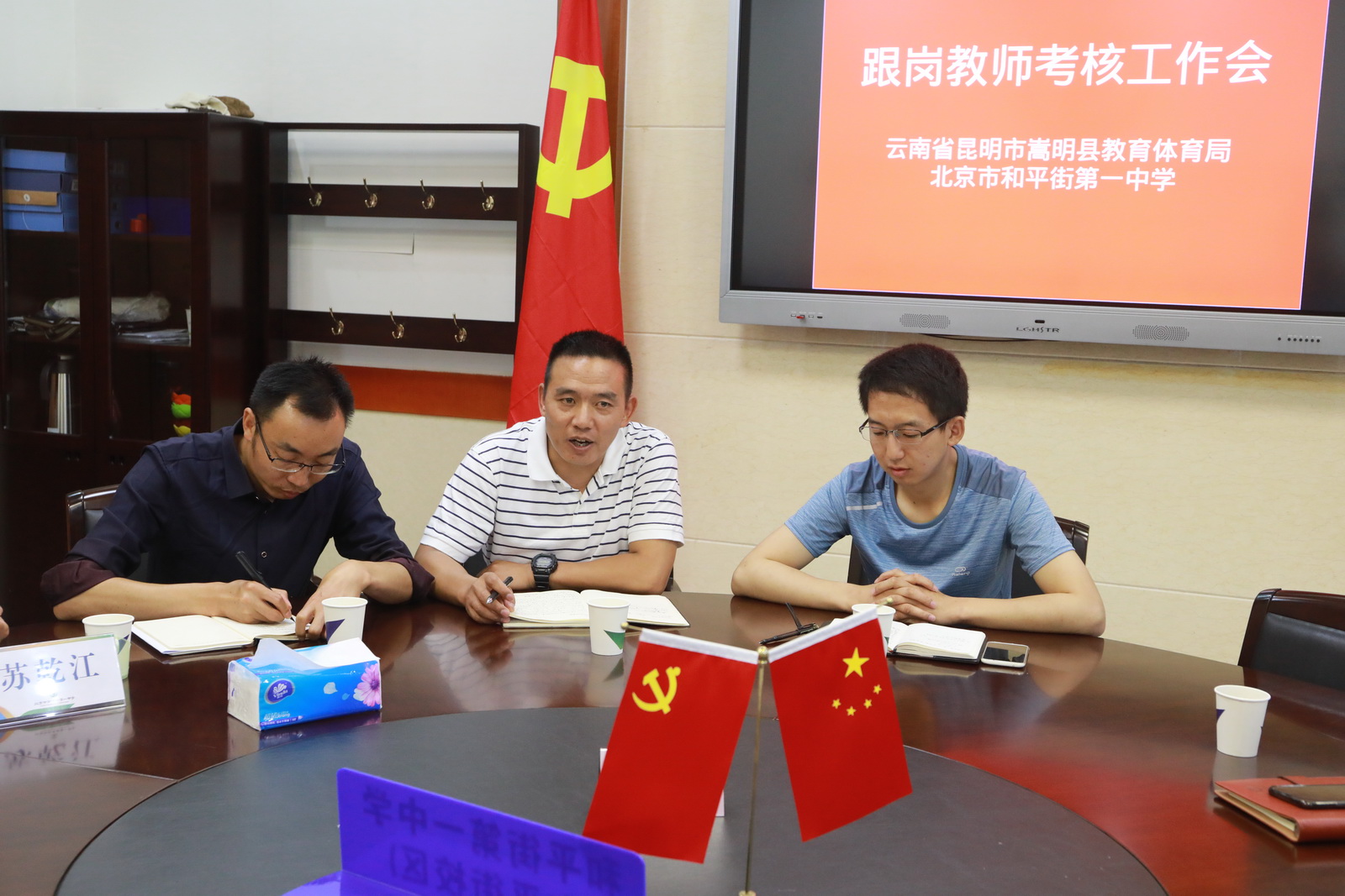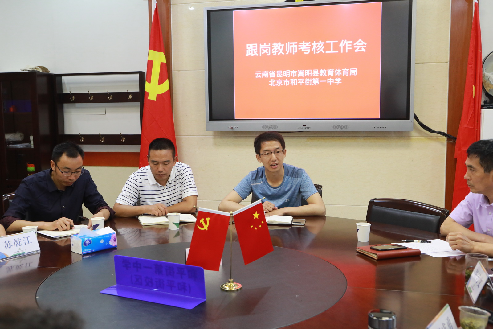 2019年6月12日,和平街一中在和平街高中校区召开跟岗教师考核工作会,对由云南省昆明市嵩明县教育体育局委派来校跟岗实习的三位跟岗实习干部进行考核。嵩明县教体局副书记陈卫平,嵩明一中校长施猛、书记段正云,和平街一中校长陈秀珍、书记李兵、副校长曹成勇、副校长蒋文杰、校长助理张习文及三位跟岗实习干部参加了会议。