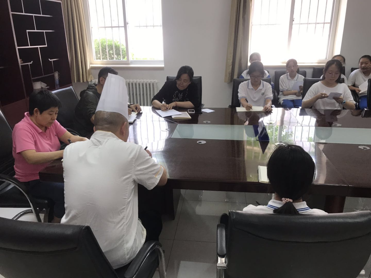 2019年6月11日,校务办与学生发展处联合主持召开了教师餐及学生营养餐座谈会。食堂负责人、部分老师、班主任、各班学生代表参加了座谈会。