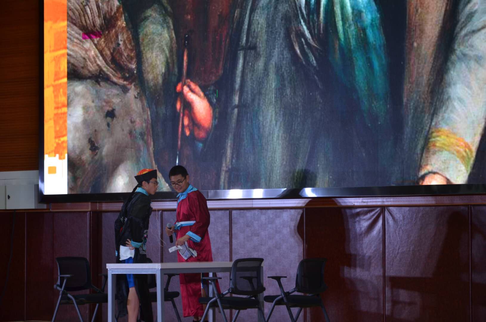 初一18年排演的《马嘎尔尼来华》,将乾隆的狂妄自大,固执愚昧的形象表现的淋漓极致,在他们精妙的对白里,学生不时发出会心的笑声。