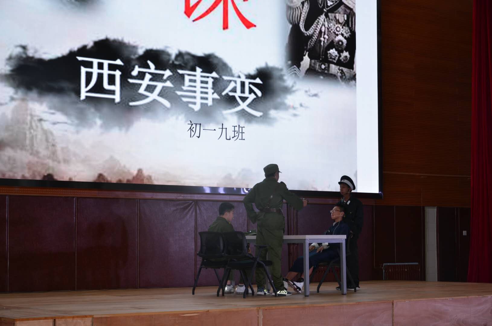 什么是爱国?初一10班选择了五四运动作为主题,当学生面临北洋军阀的压制群情激昂,振奋高呼“外争国权,内除国贼”时,我知道了什么是爱国。初一9班通过西安事变表达了中国共产党为了顾全抗日大局,舍弃一党恩怨,在西安事变中作出了放蒋的决定。在周恩来阐述为何要放蒋时,我知道了什么是爱国。