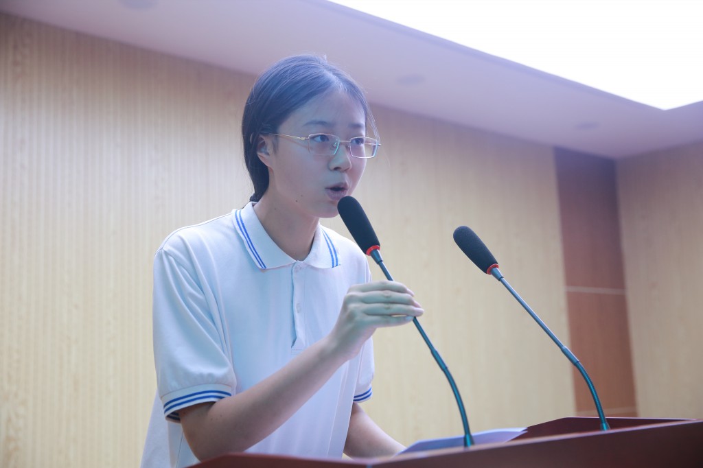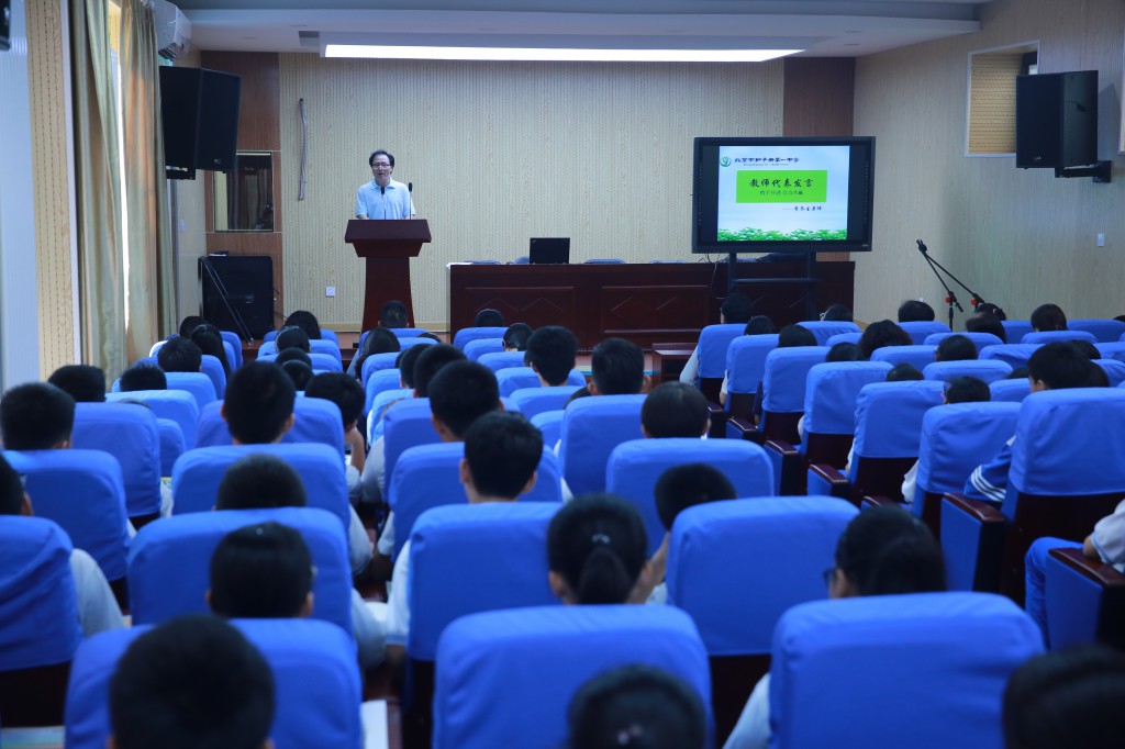李冬生老师作为初三教师代表,发表了“携手共进、合力打造高质量的初三教学”主题演讲。李老师从著名教育学家龙应台对儿子的教育谈起,指出学习可以让人拥有更多的选择权,更多的成就感、尊严和快乐。作为教师代表,李老师承诺大家,老师们将竭尽全力,和每一位同学携手共进,让每个学生都发光。同时,也对新一届初三学子提出了期盼,希望每一位和一学子拥有自信和不懈努力,过好纯粹美好、厚积薄发的初三生活。