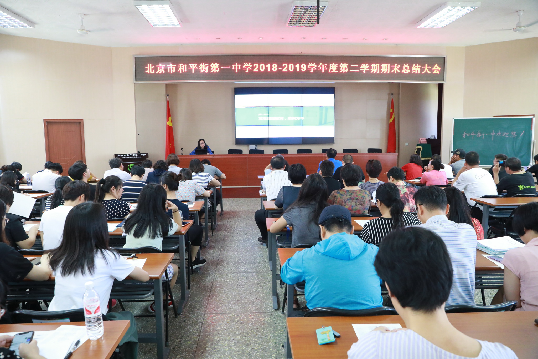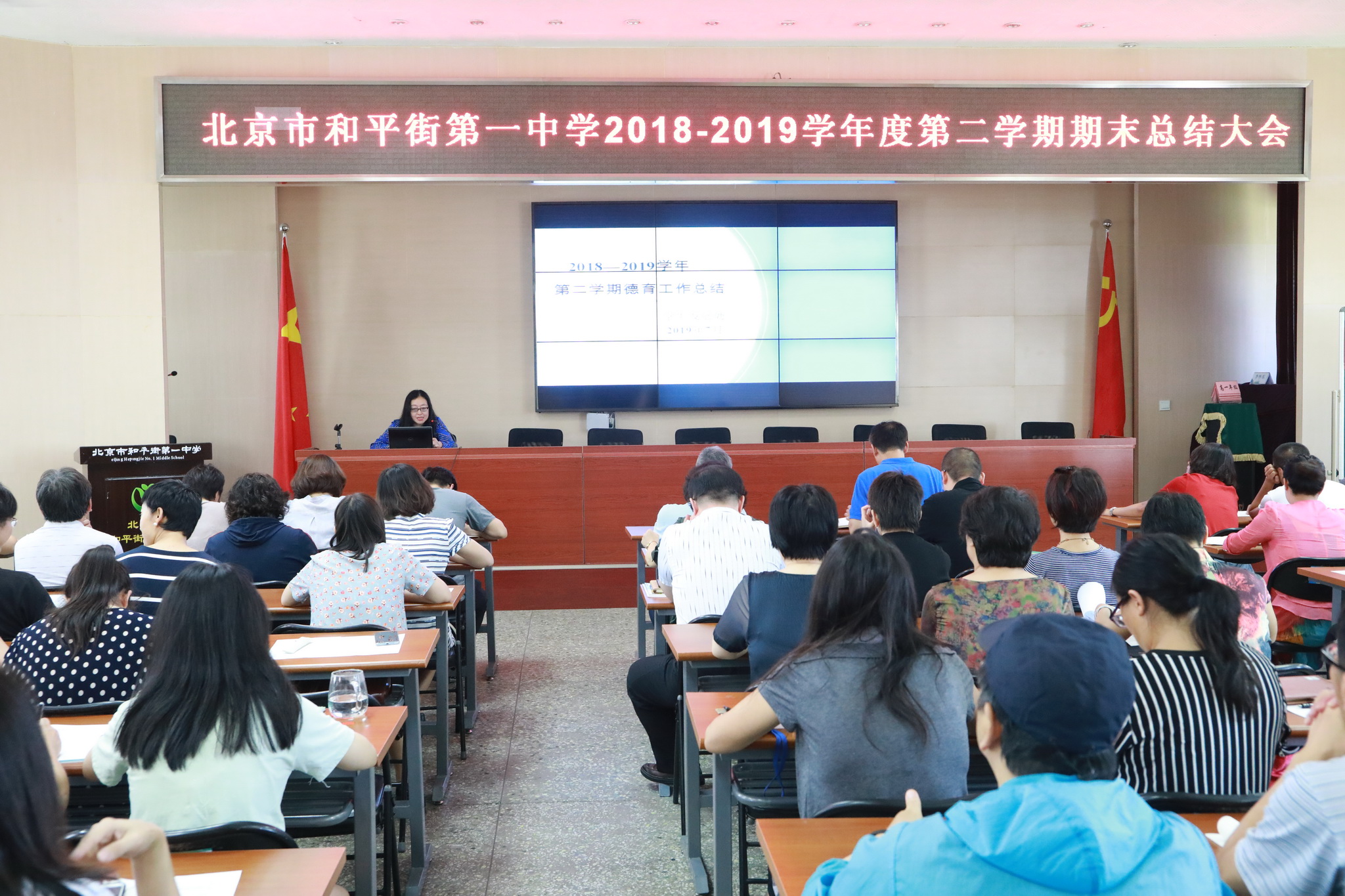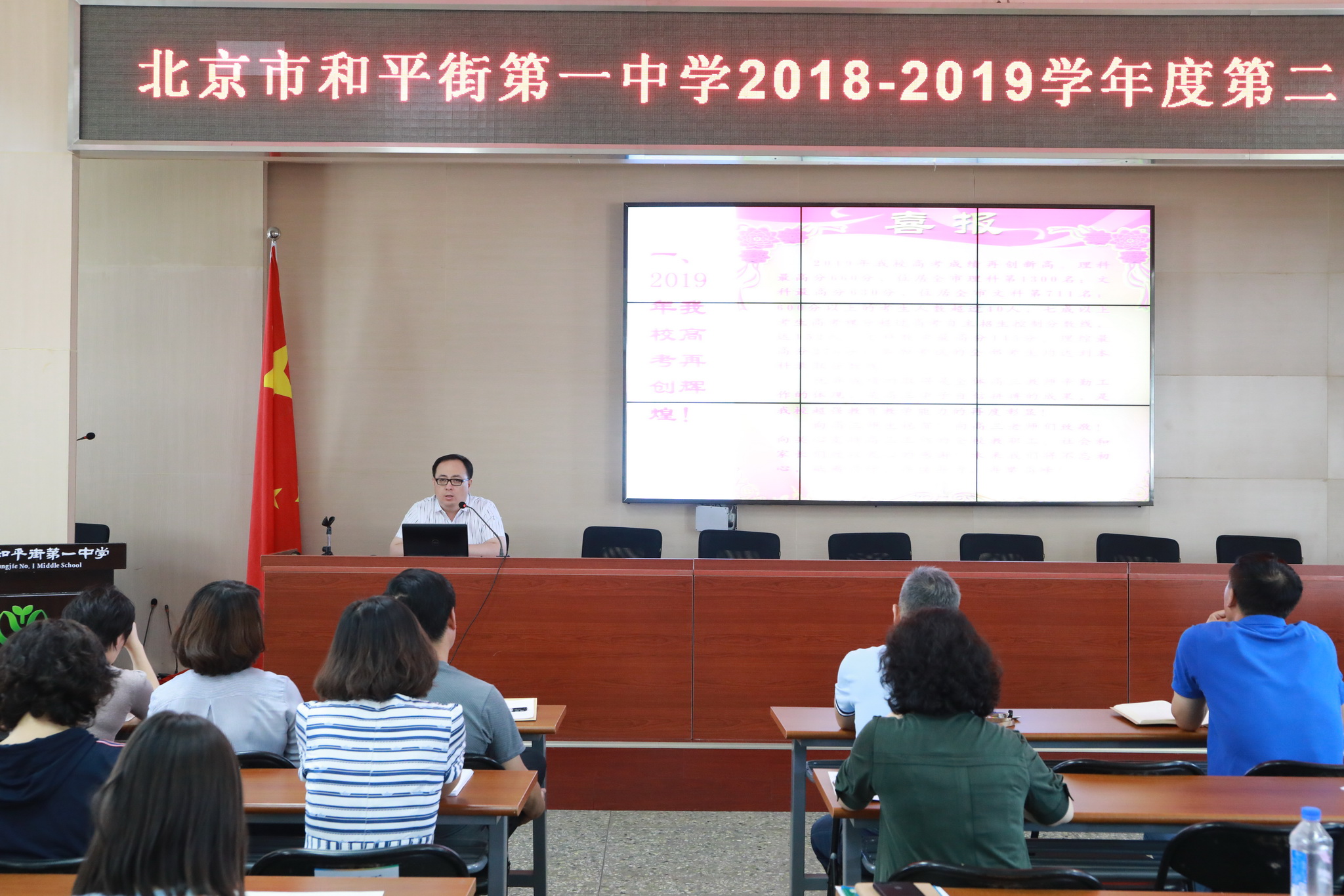2019年7月12日上午,和平街一中和平街高中校区召开期末工作总结大会,全面回顾一学期以来的各项工作,安排部署暑假工作。校区全体教职员工参加了会议。校区主管副校长曹成勇主持会议。