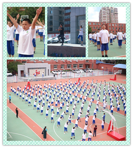 在为期五天的教育实践活动中,学生们充分发扬了不怕吃苦、顽强拼搏的精神,在五位体育老师和初二年级十八名志愿者的带领下,完成了基本队列训练以及认真学习了我校自编的《部位操》和国操《舞动青春》的所有内容。每个动作都精益求精,力求完美,他们用每一滴汗水诠释着和一精神的真正内涵。