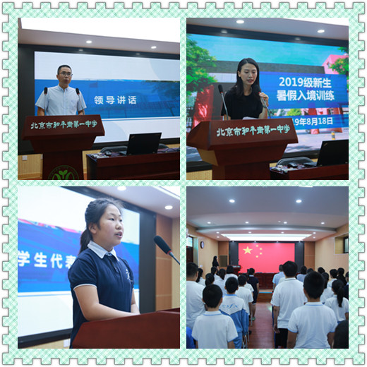 8月18日上午八时,开营仪式在礼堂隆重举行。首先,邹小刚校长对所有新生的到来表示了热烈的欢迎。他表示,此次入境教育活动的开展标志着又有新鲜血液注入到和一这个大家庭。多年来,在广大教师的辛勤耕耘下,和一历届学子刻苦勤思,锐意进取,积淀了浓厚的文化底蕴,逐渐形成了“文明、守纪、友爱、勤学”的校风,并用实际行动诠释了“立志、勤奋、求实、开拓”的校训,相信2019级全体新生也一定会勇攀高峰,用自己的坚毅、刻苦、诚实、勇敢、努力,在和一的校园留下奋斗的足迹。同时校领导也对此次训练提出了要求与希望,随即新生代表也做了“不负使命,勇敢超越”的表态发言。
