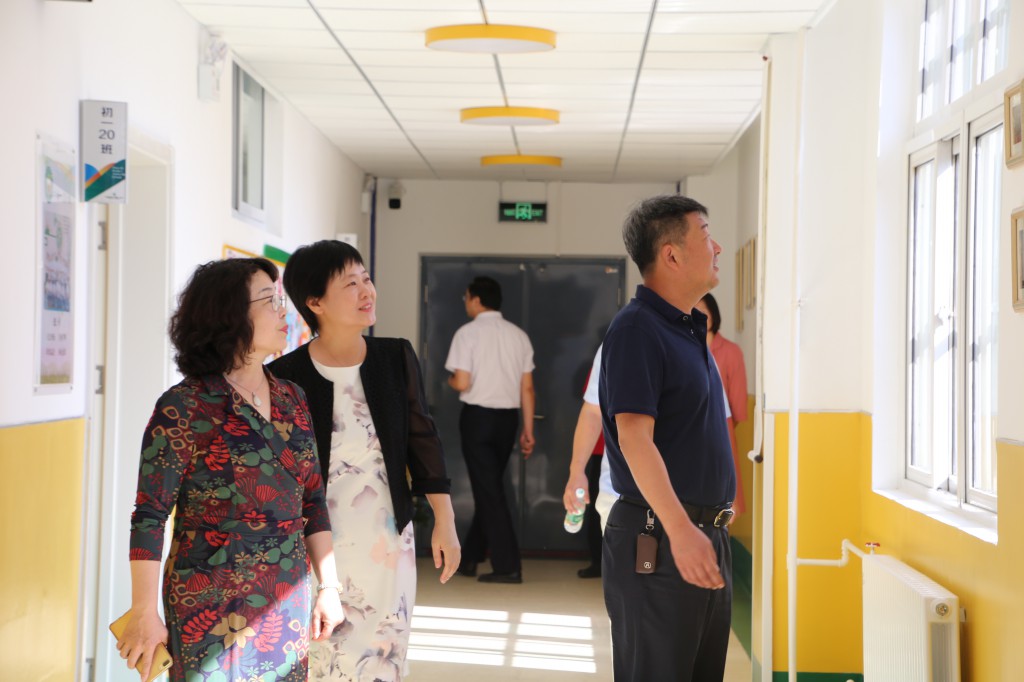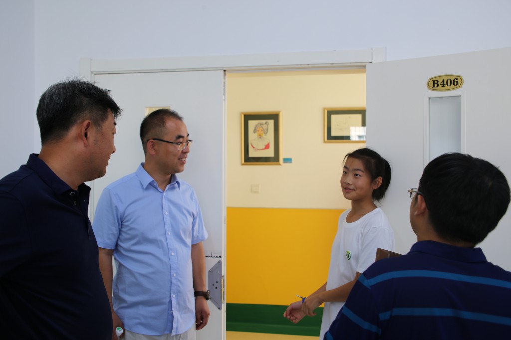 2019年8月30日一大早,朝阳教委副主任孙迅和陈先豹,以及朝阳教委基教一科科长曾广华、朝阳教委规划科成林老师就先后来到北京市和平街第一中学奥运村校区,关心学校的设施设备是否到位,询问开学的准备工作。和平街一中校长陈秀珍,奥运村校区主管副校长周建萍,进行了详细地汇报。