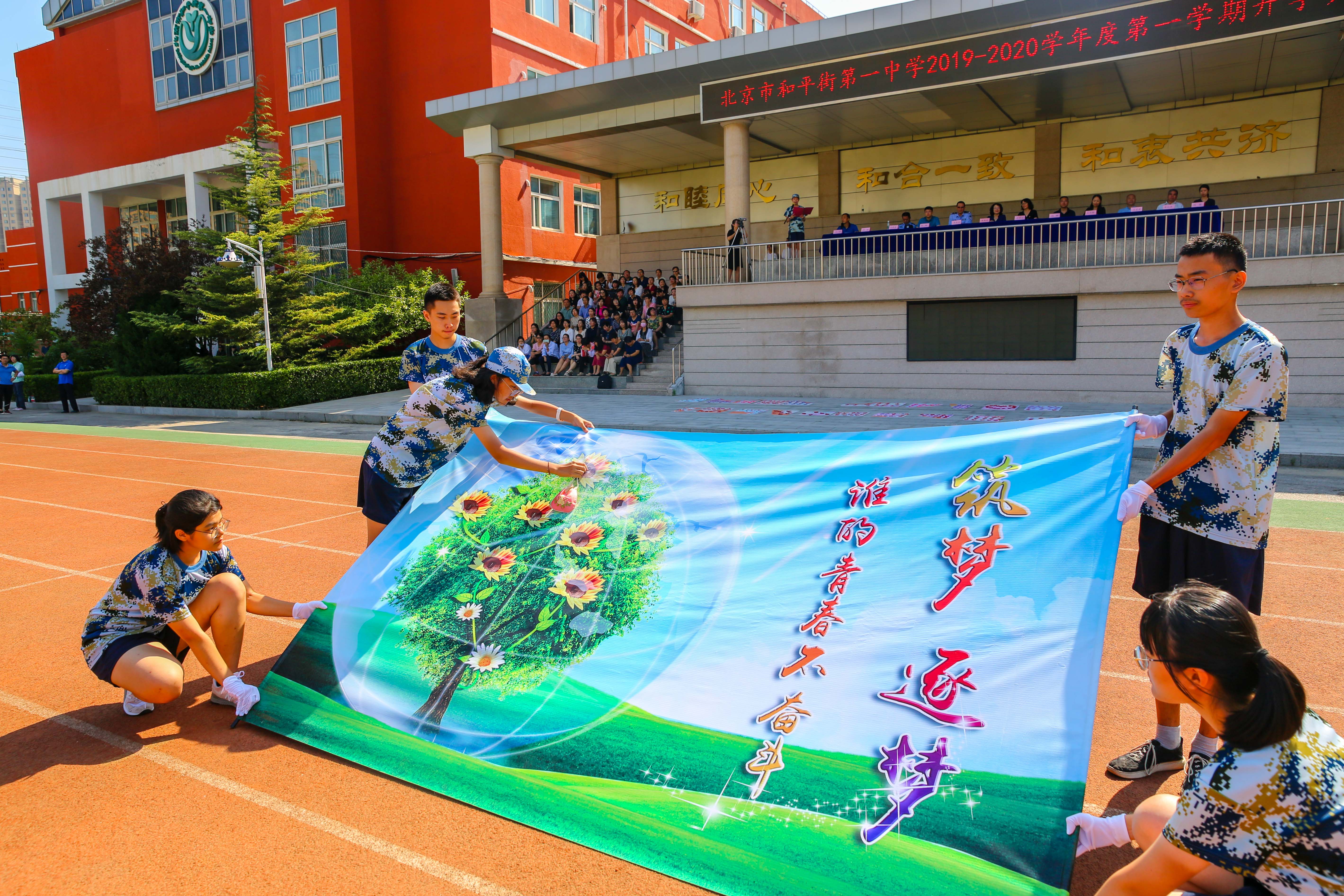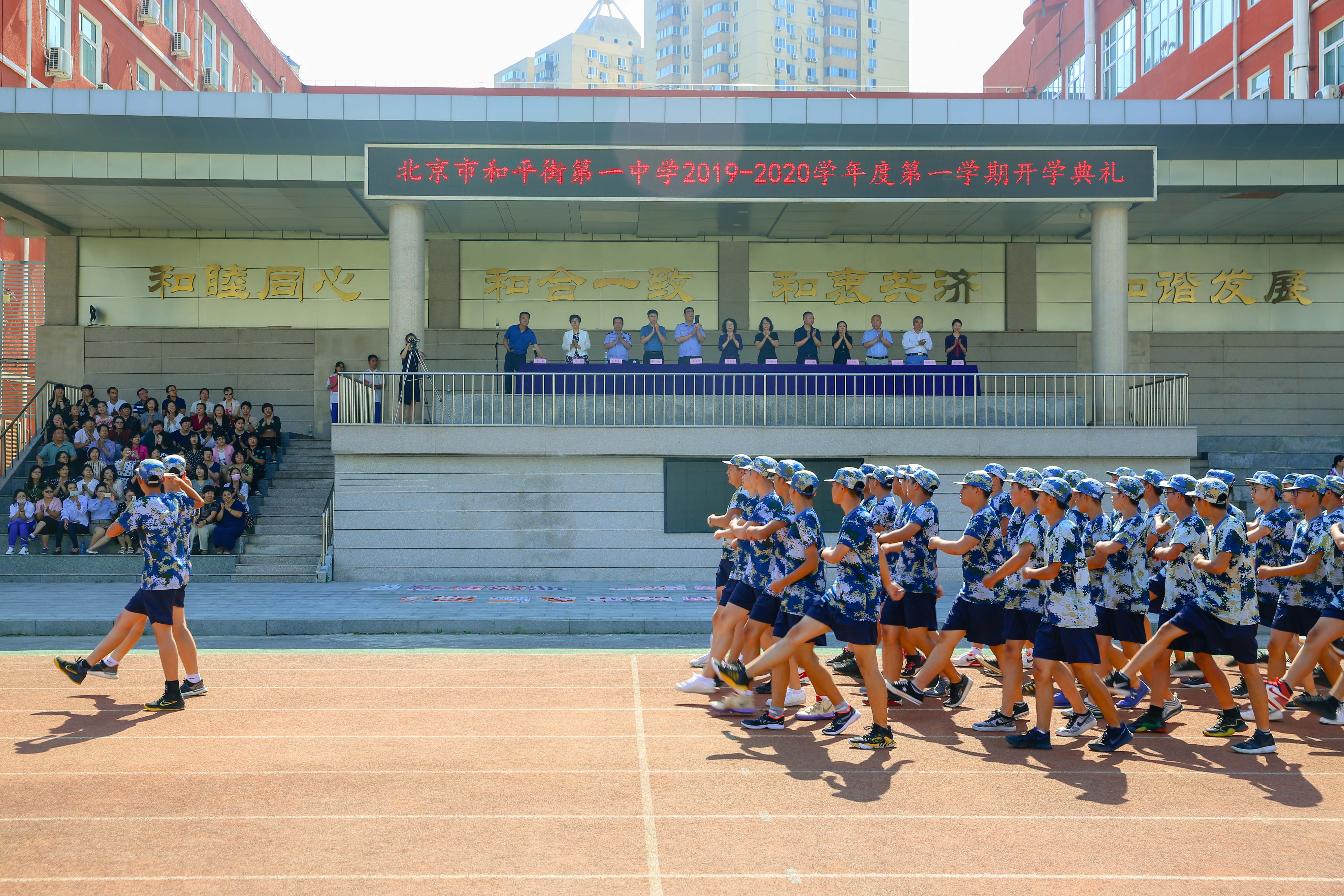 2019年9月1日,北京市和平街第一中学莲葩园校区举办了以“我与祖国共成长”为主题的2019-2020学年度开学典礼。莲葩园居委会书记李淑云,法制副校长李景富、王希海,校长陈秀珍,主管校长杜鹏,校长助理刘鹏及校区中层领导干部参加了本次开学典礼。