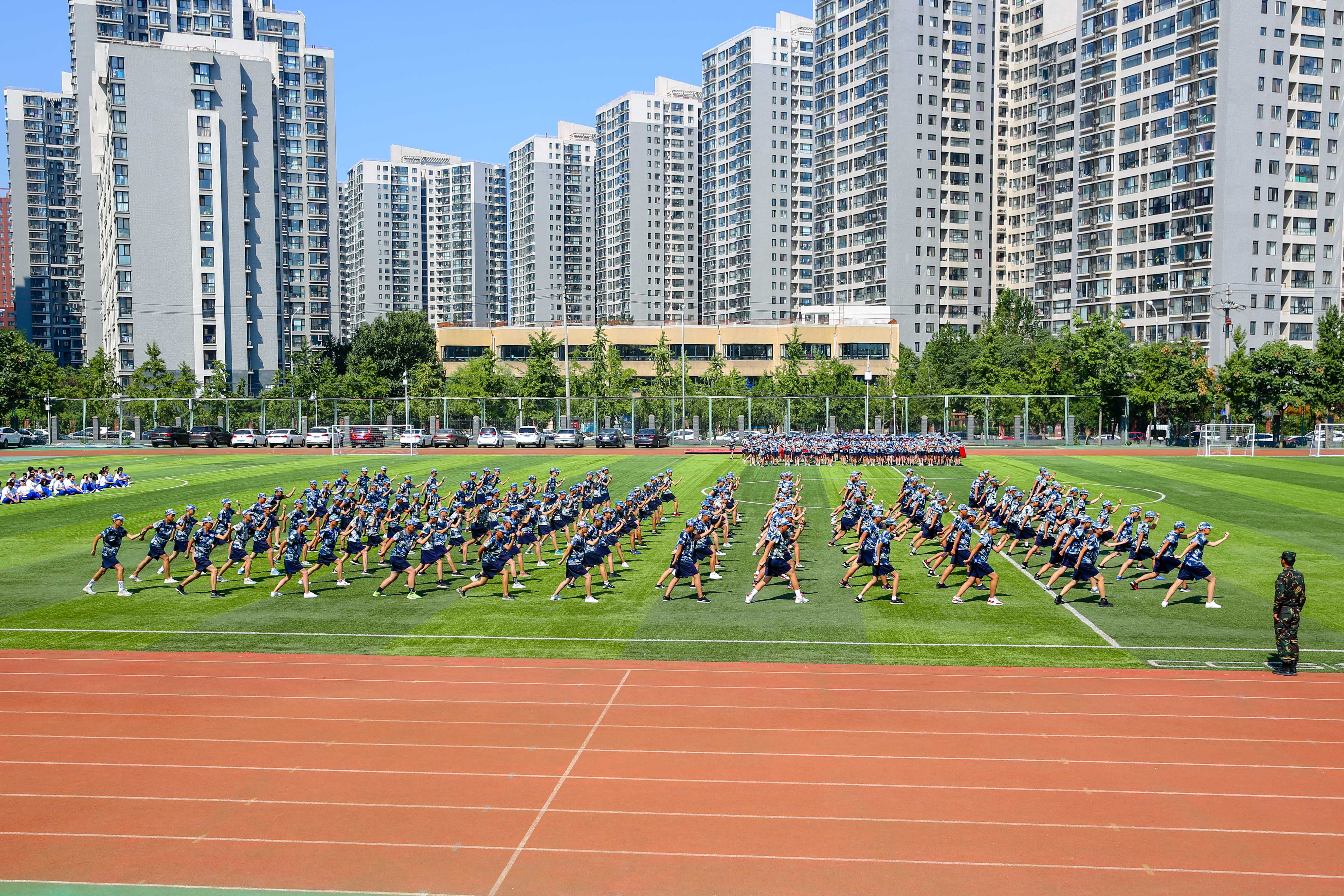 随后军训汇报表演正式开始,充满力度的军体拳、整齐划一的旗语操展现出了较高的训练水平和良好的精神状态。高一年级新生筑梦是莲葩园校区开学典礼延续多年的传统,本次高一年级将所有的梦想卡都装在一起,悬挂到盛开的向日葵上。八朵盛开的向日葵代表了每个班的莘莘学子更无柳絮因风气,惟有葵花向日倾。