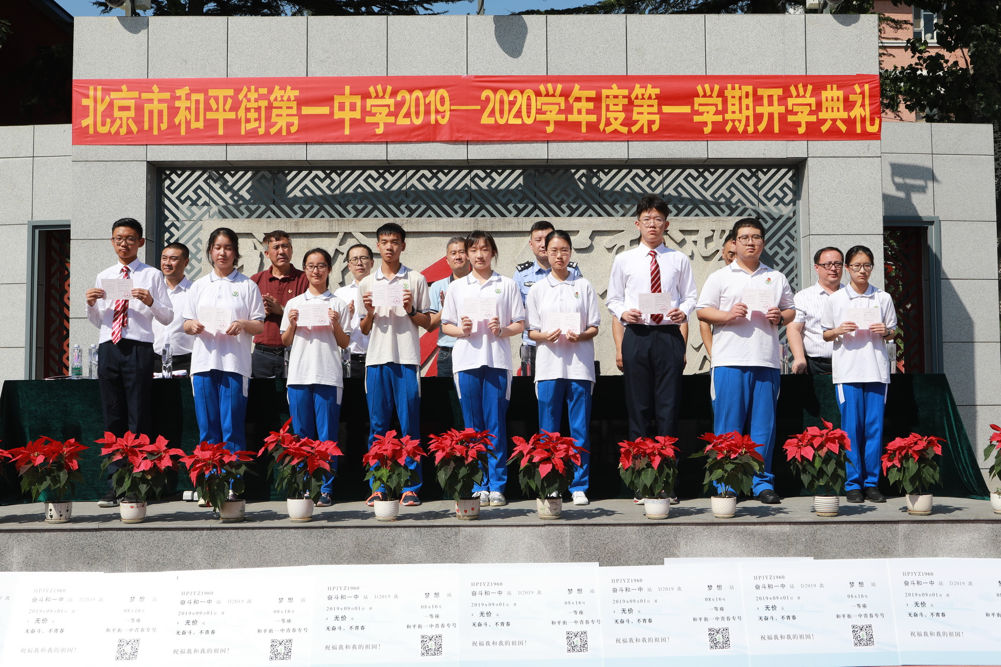 典礼最后,李兵书记代表学校送给每一位同学一份开学礼物,一张通往梦想的“和平街一中青春专号”车票,在2019年9月1日,D2019次列车从“奋斗和一中站”出发,开往“梦想车站”,这一路,同学们将阅尽风光,披荆斩棘,实现目标,和伟大的祖国一起“逆风起飞,在风雨中获得收获”,勇往直前,战无不胜!