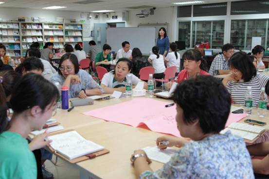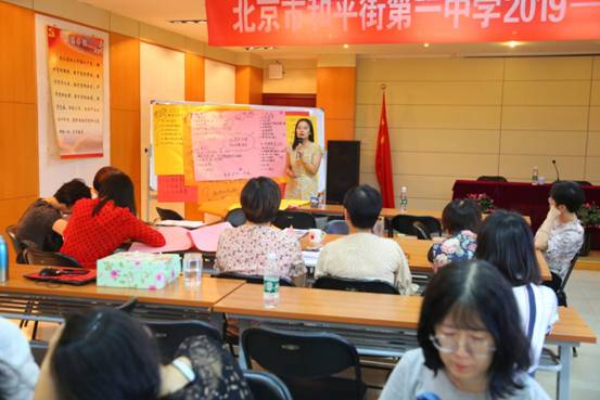 为了提高培训的针对性,下午的培训会分初、高阶段,分校区进行。学校邀请了朝阳区德育教研中心、班主任研究中心负责人肖艳丽和北师大三附中,曾获北京市紫禁杯一等奖的优秀班主任石军红老师分别为初、高中班主任设计了丰富的小组合作学习活动。活动首先针对上午刘成杰教授讲座的内容进行了小组讨论和交流探讨,然后在讨论的基础上针对班主任工作思路、工作方法、教育改革、学生综合素质培养等问题进行头脑风暴和展示,并设有观察组总结陈述。