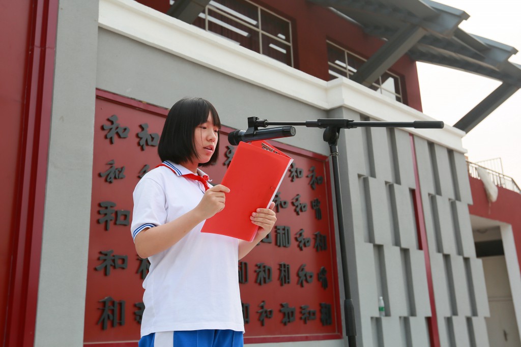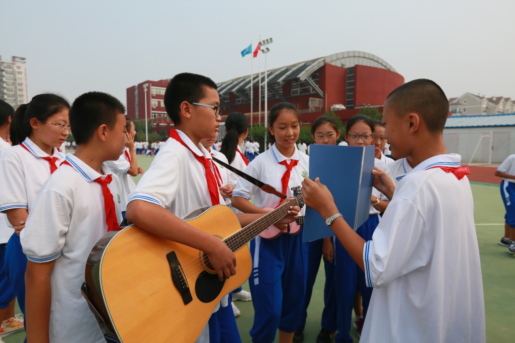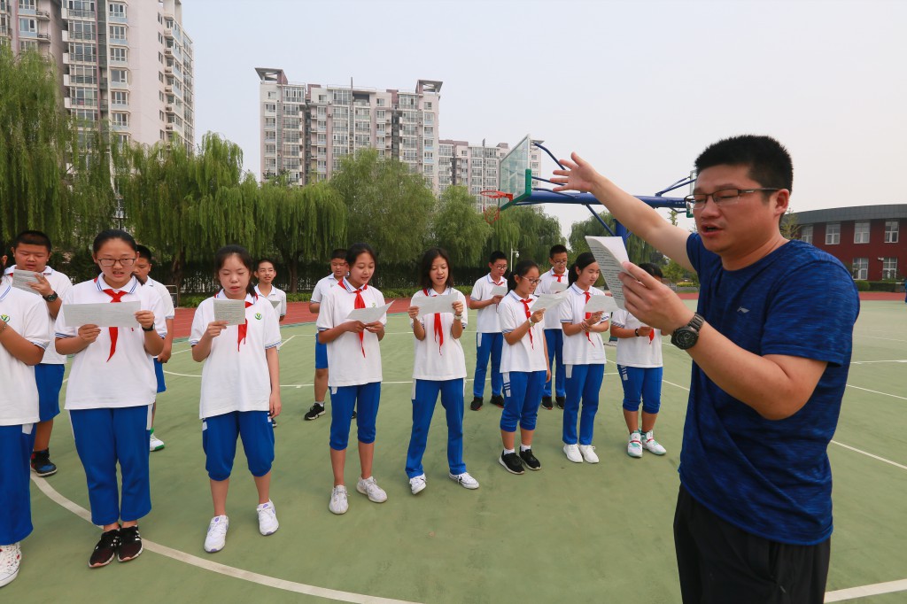 9月9日升旗仪式,张程程同学代表全体学生为老师送去深情的祝福;各班学生围成一圈,邀请老师进入场地中间。音乐背景下,学生们把自己内心深处的感谢,大声的说给老师听。在班长的组织下进行精彩的才艺展示和有意思的游戏互动。