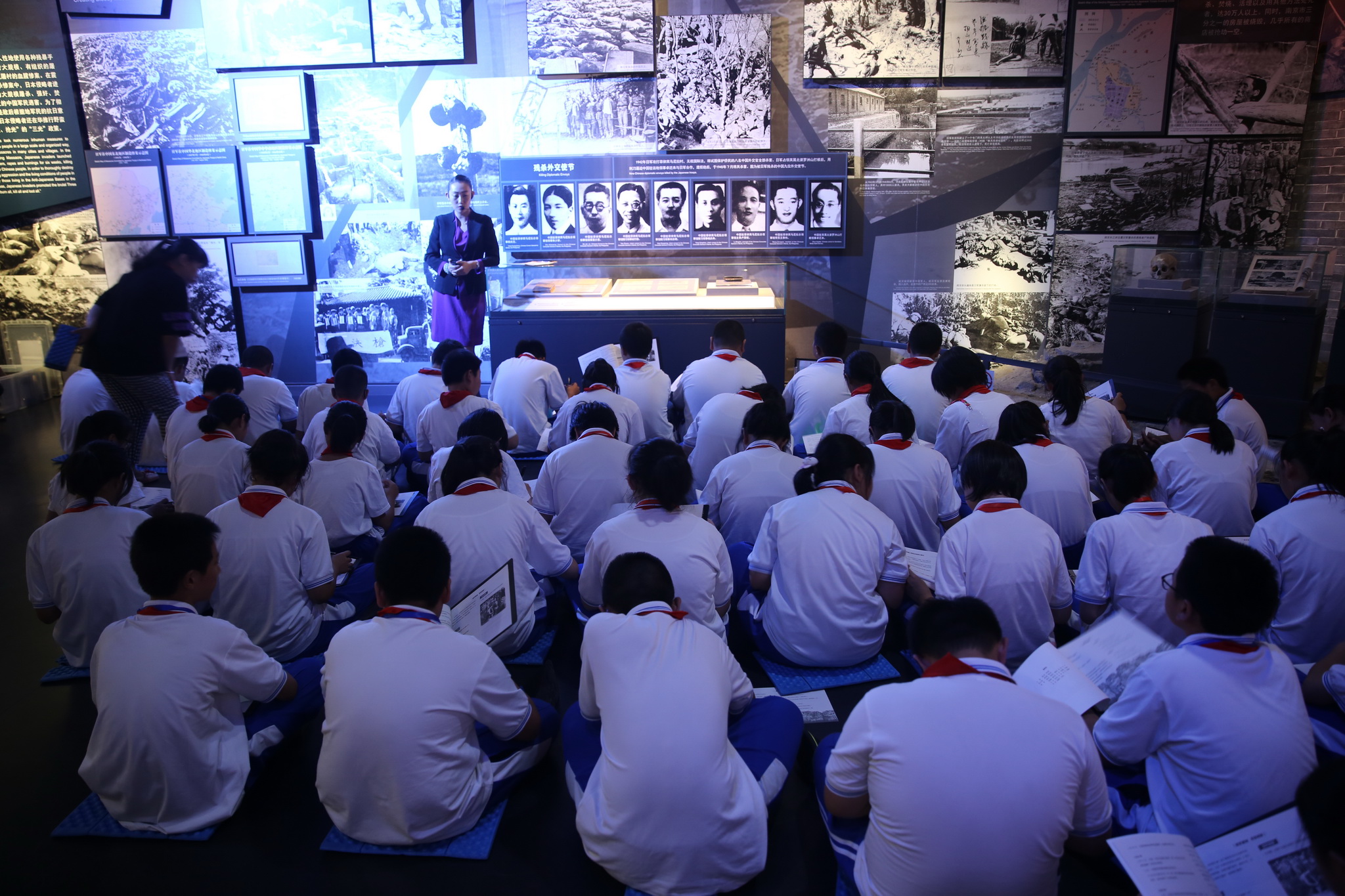 随后,全体师生怀着崇敬的心情,开始参观。同学们以班为单位在讲解员的带领下,了解中国人民抗日战争历史,学唱红色歌曲,聆听抗战故事,认真完成任务单。
