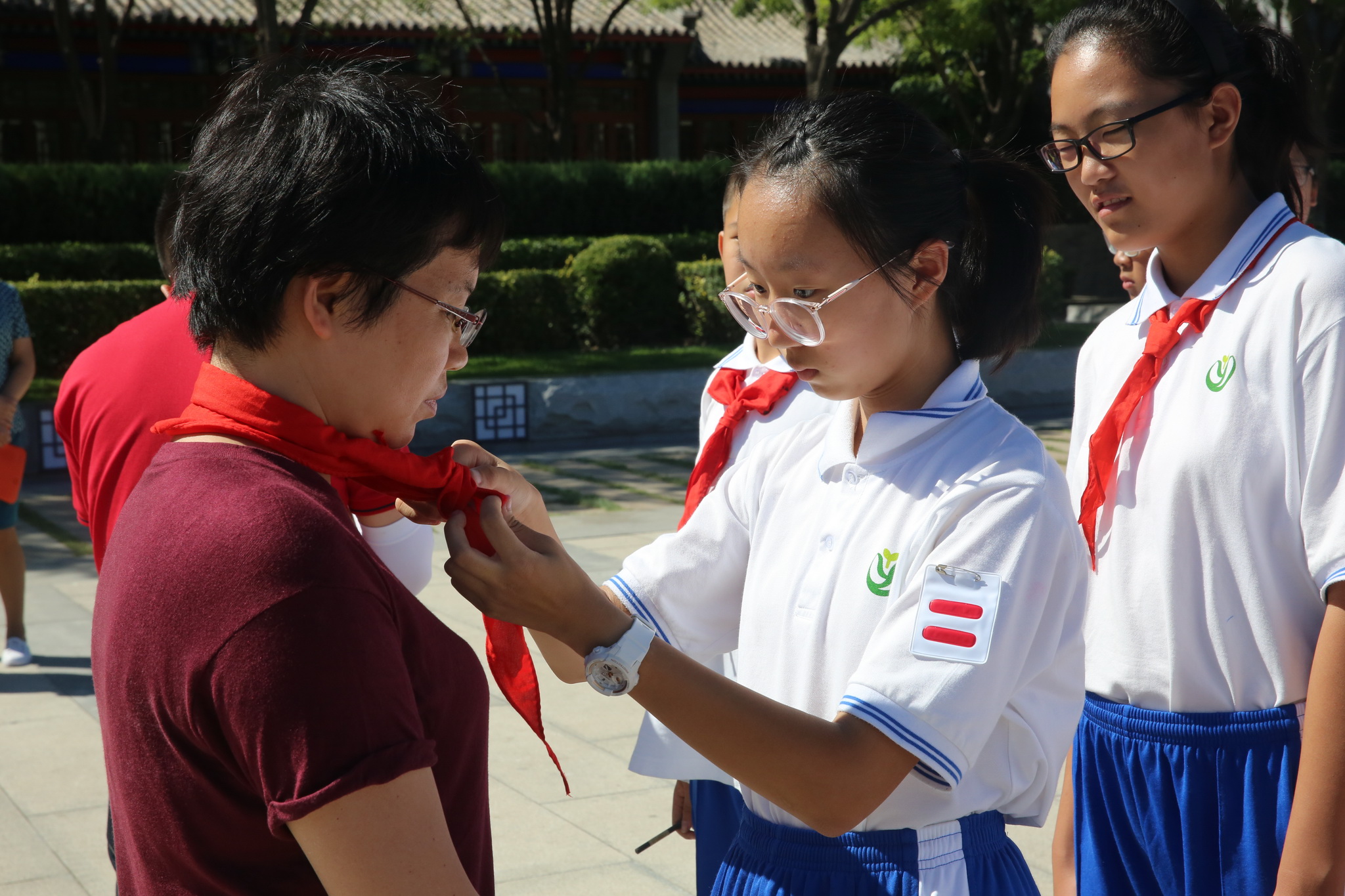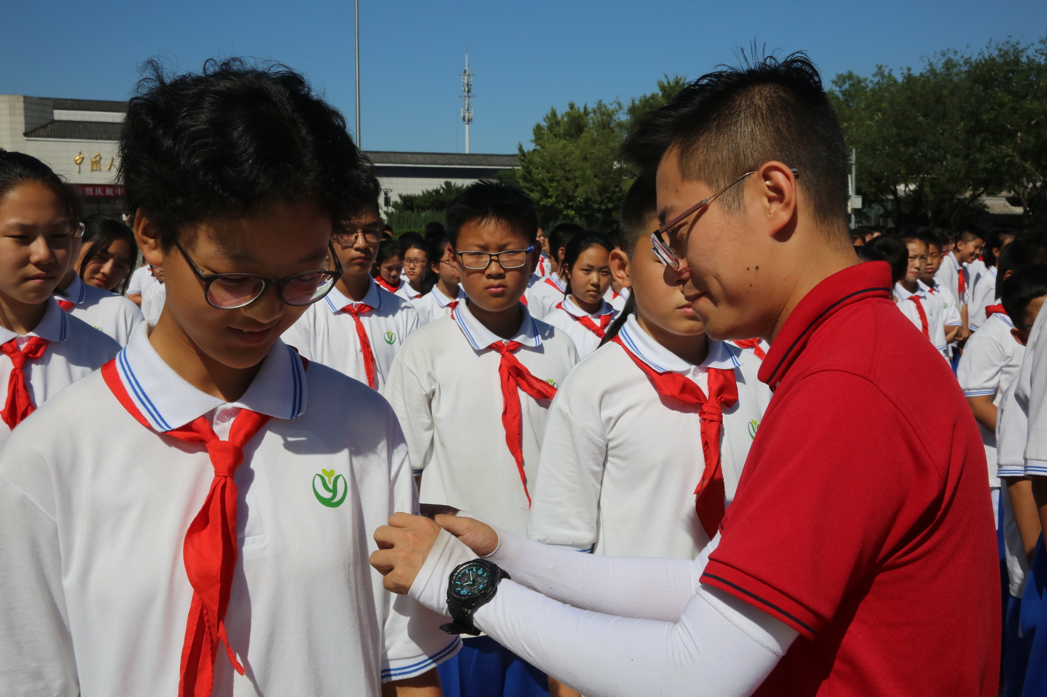2019年是新中国成立70周年,为落实北京市教委关于中小学“四个一”教育实践活动,用仪式教育、主题性教育等方式提升学生学习兴趣,加深实践感受,立德树人,使学生在庄严的仪式中、在丰厚的文化氛围里,培育和践行社会主义核心价值观。2019年9月18日,在“九一八事变”88周年之际,和平街一中和平街初中校区、朝来校区初一全体少先队员来到位于宛平城内的中国人民抗日战争纪念馆,举行“我与祖国共成长 争做小小追梦人”主题建队仪式,迈好中学第一步。学生发展处张东辉主任、蒋韦主任,教务处马静主任,团干部刘志宏老师、初一年级组长夏曼青老师、徐笑蕾老师以及初一全体班主任、部分体育老师出席了建队仪式,仪式由优秀少年队员代表同学初一10班李恬恬同学主持。
