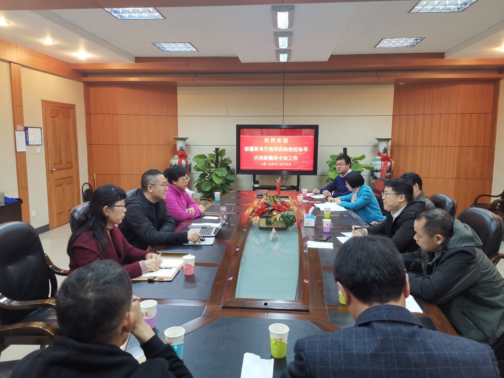 2019年11月16日,教育厅新疆教育协作中心杨再峰科长、喀什地区教育局内学办劳咏梅主任、乌鲁木齐第66中学德育主任马振刚、教育厅新疆教育协作中心干部刘阳一行四人来到北京市和平街第一中学莲葩园校区开展内高班工作调研。校长助理刘鹏,学生发展处洪娟主任以及内派老师参与了座谈活动。