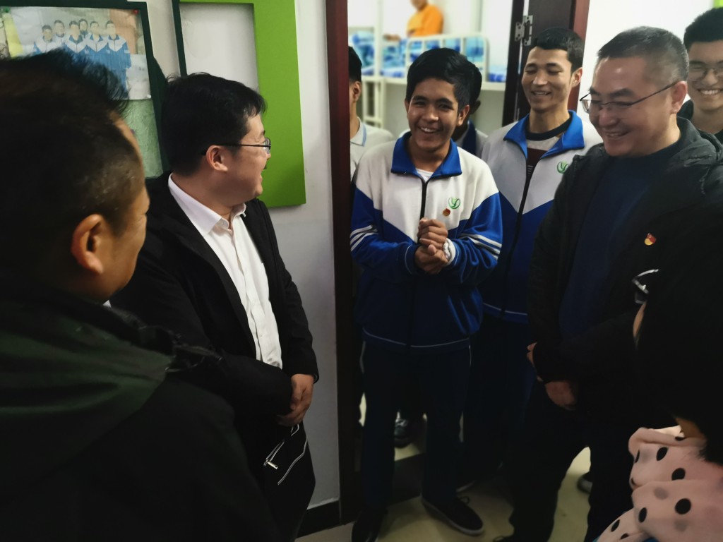 刘校助首先代表学校对调研组的到来表示热烈欢迎。随后向调研组介绍了学校概况和内高班的整体情况,以及我校内高班的办学管理、育人理念及取得的可喜成果。目前,全校312名新疆学生适应良好,学习勤奋、表现优秀,还在合唱、足球、健美操等多领域中取得了突出成绩,成为了学校的亮点和骄傲。刘校助希望调研组领导多提出宝贵意见,为学校更好的服务、培养新疆学生提供支持和指导。内派教师刘春秋老师也从对学生的思想教育、日常生活管理、心理疏导等方面,谈了自己在学校一年多以来的工作和感受。杨再峰组长对我校内高班工作进行了高度的肯定,并提出我校对于内高学生爱国主义教育、民族团结教育做到了实处。在最后,调研小组对学校环境进行了参观,来到了学生宿舍楼、清真食堂并与部分学生进行了交流。了解到了学生们的食宿情况,对学生们良好的生活环境、整洁的食堂卫生连连称赞。