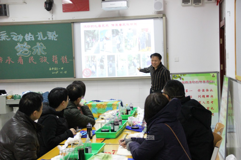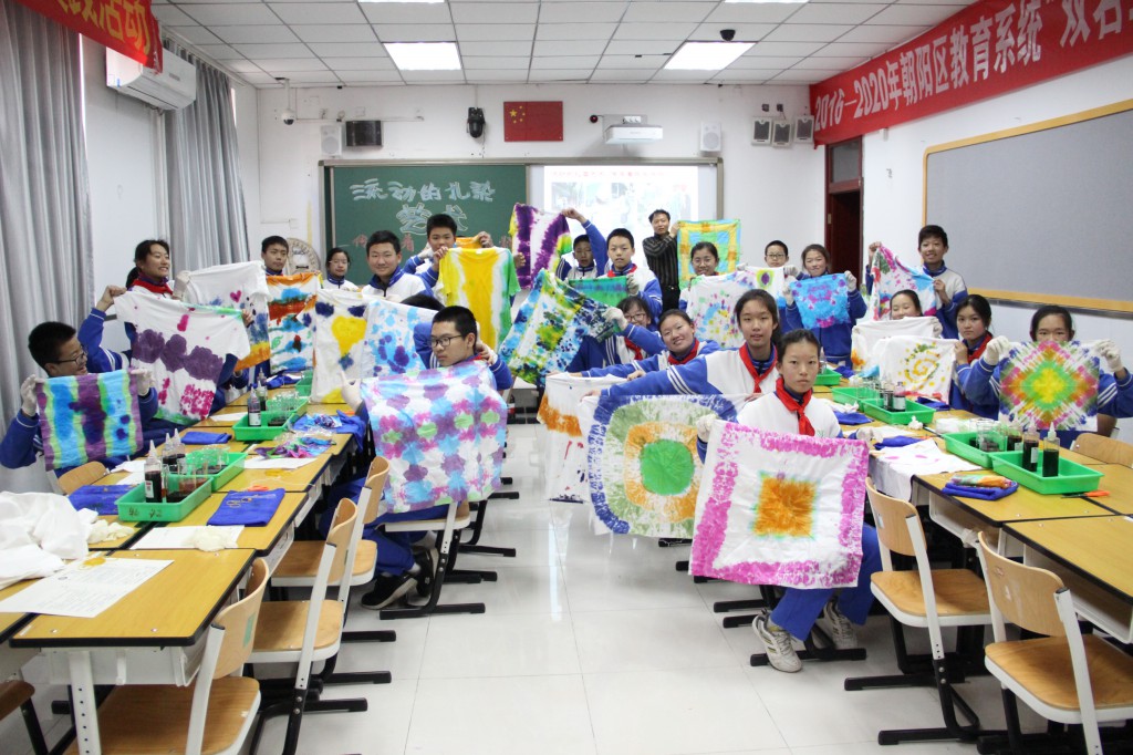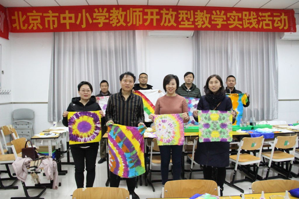 2019-11-18日,我校区北京市综合实践骨干教师李冬生完成了一次课题为《流动的扎染艺术 传承着民族精髓》的综合实践开放型教学实践活动课。有来自北京市远郊区县延庆、大兴、房山、门头沟、怀柔、昌平、通州区的老师听课和评课。