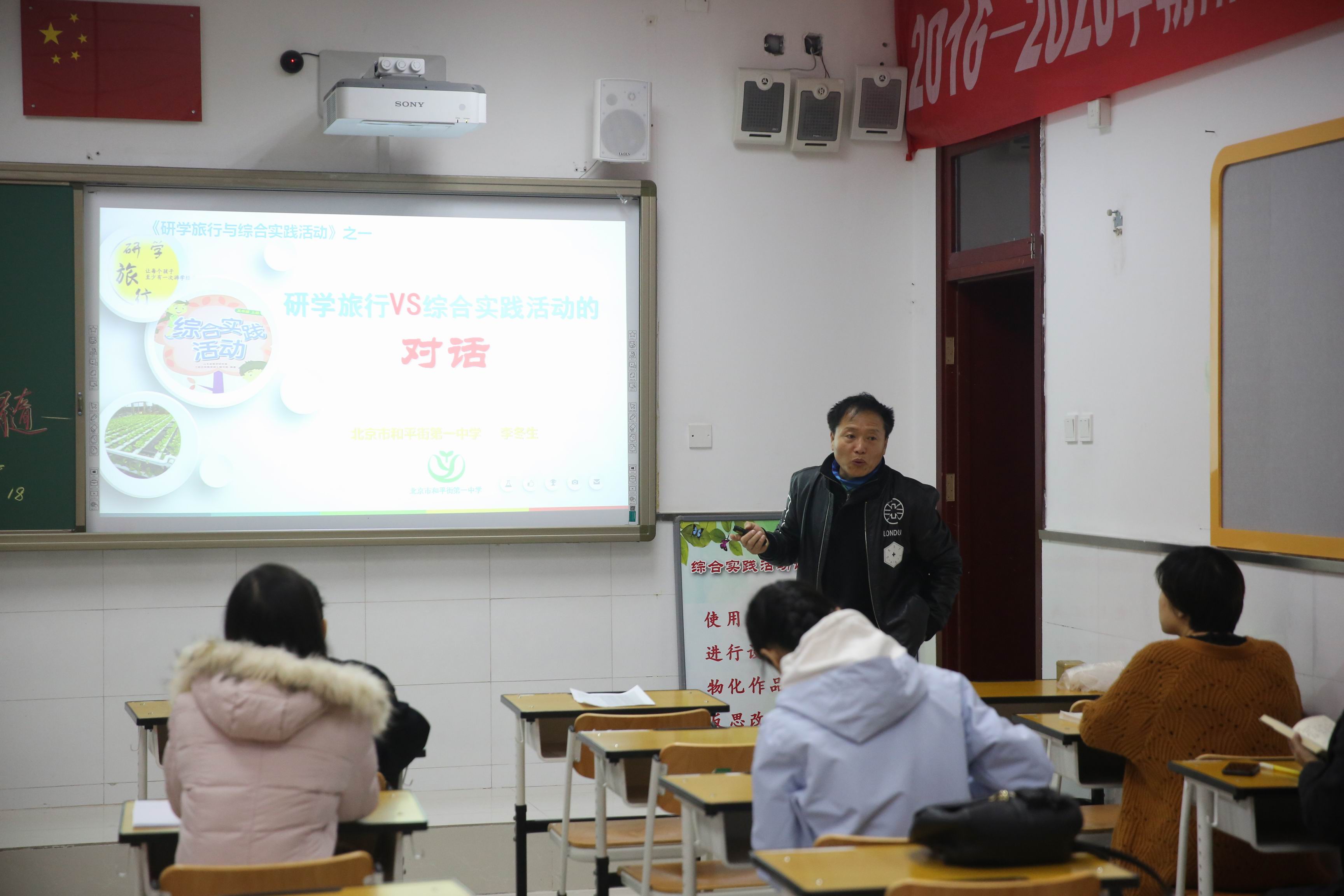 2019-11-16日,和平街校区初中校区综合实践市级骨干教师李冬生教师给来自全区不同学段和不同学科的教师们进行了3个小时的公共选修课的培训,培训的主题是《研学旅行与综合实践活动的对话》