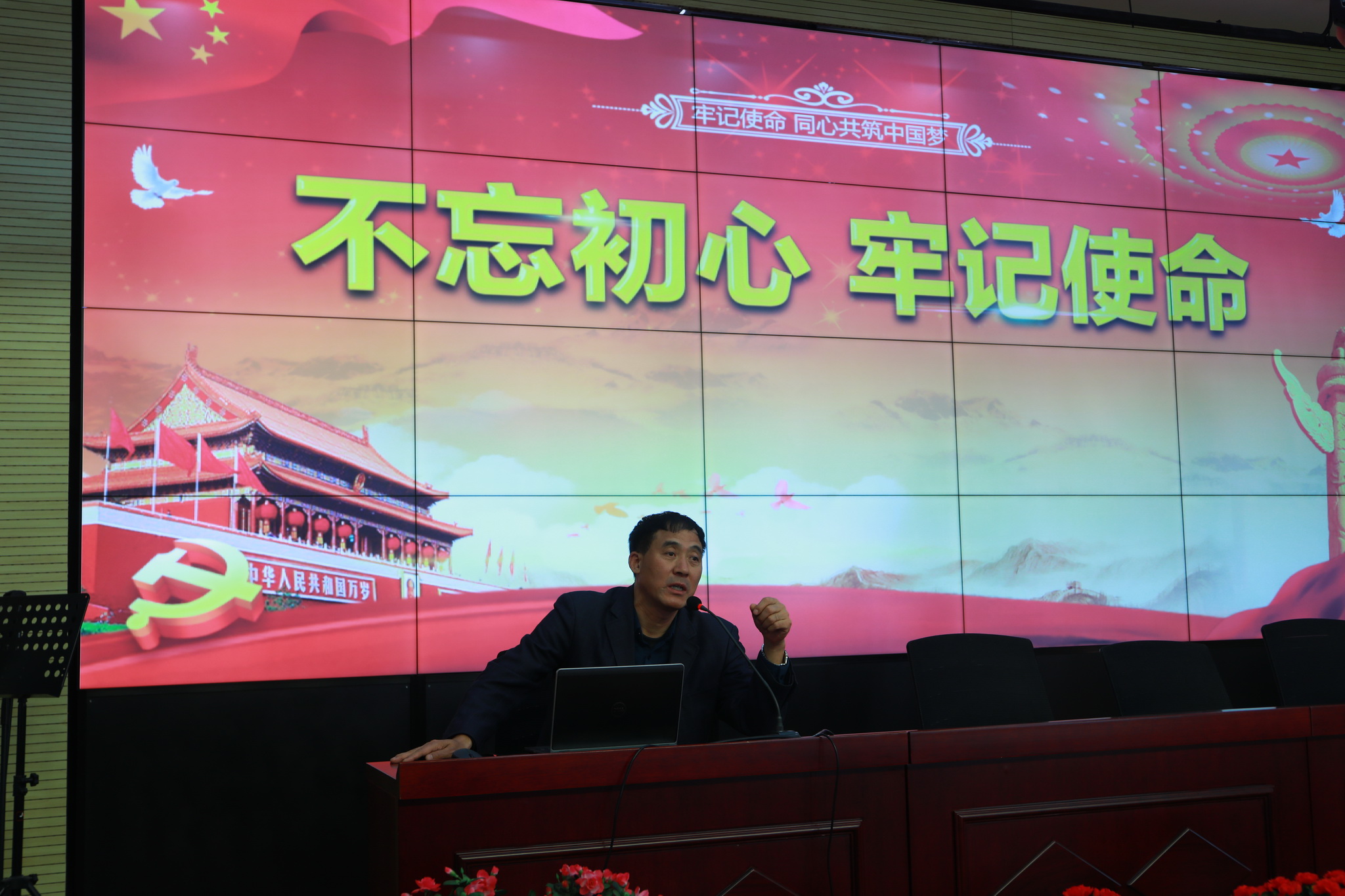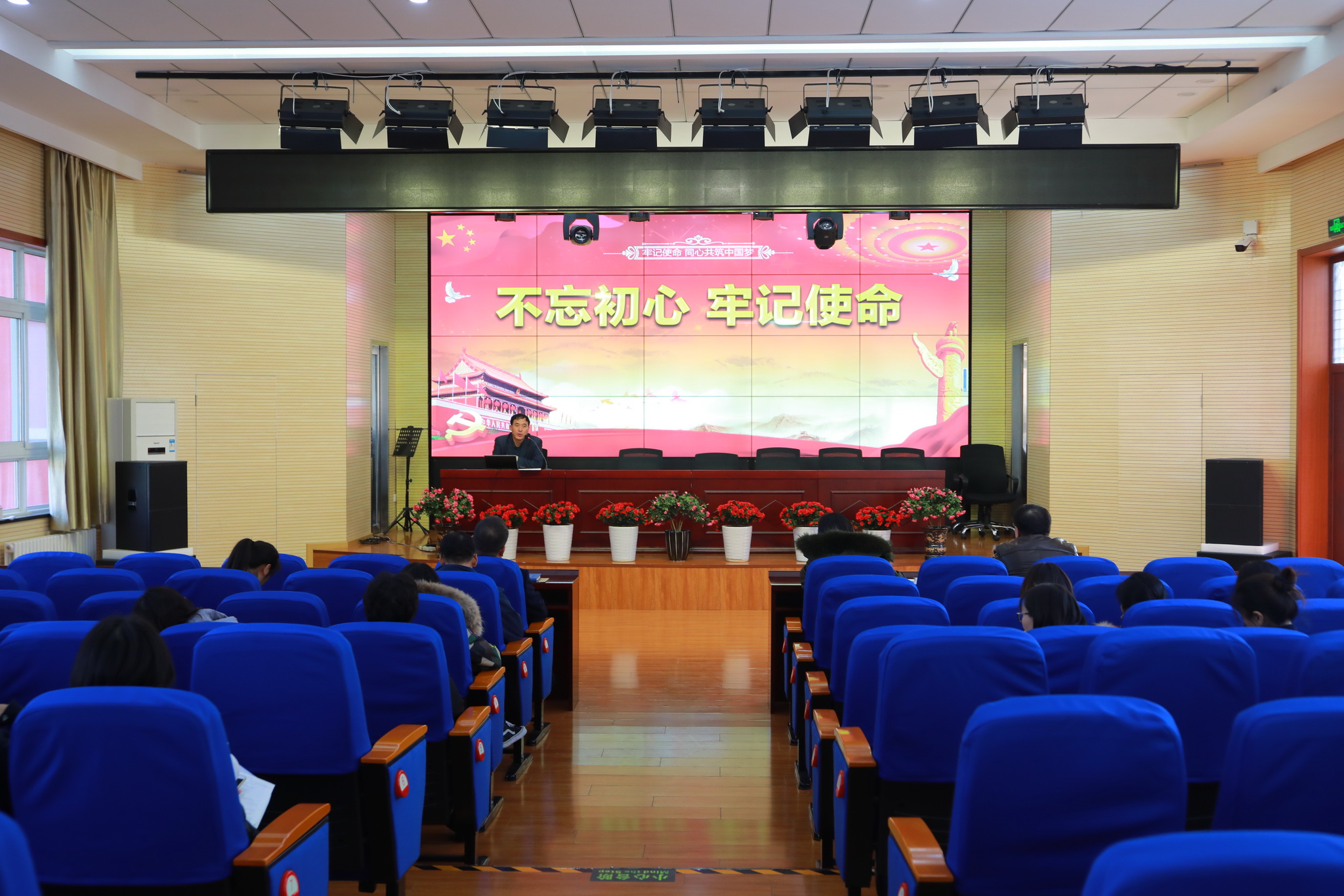 2019年11月19日,北京市和平街第一中学和平街高中校区党支部召开全体党员大会,部署“不忘初心 牢记使命”主题教育专题组织生活会和民主评议党员的工作安排。校区党支部书记曹成勇主持大会。