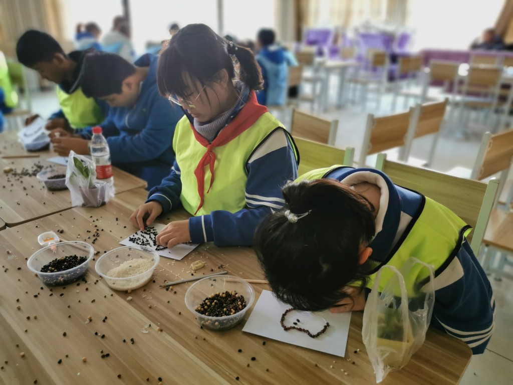 认五谷,做五谷画:五谷作为粮食作物的典型代表,在我国历史源远流长,而当下的青少年很少有人能分清五谷,此活动为学生打开了了解五谷文化的窗口。