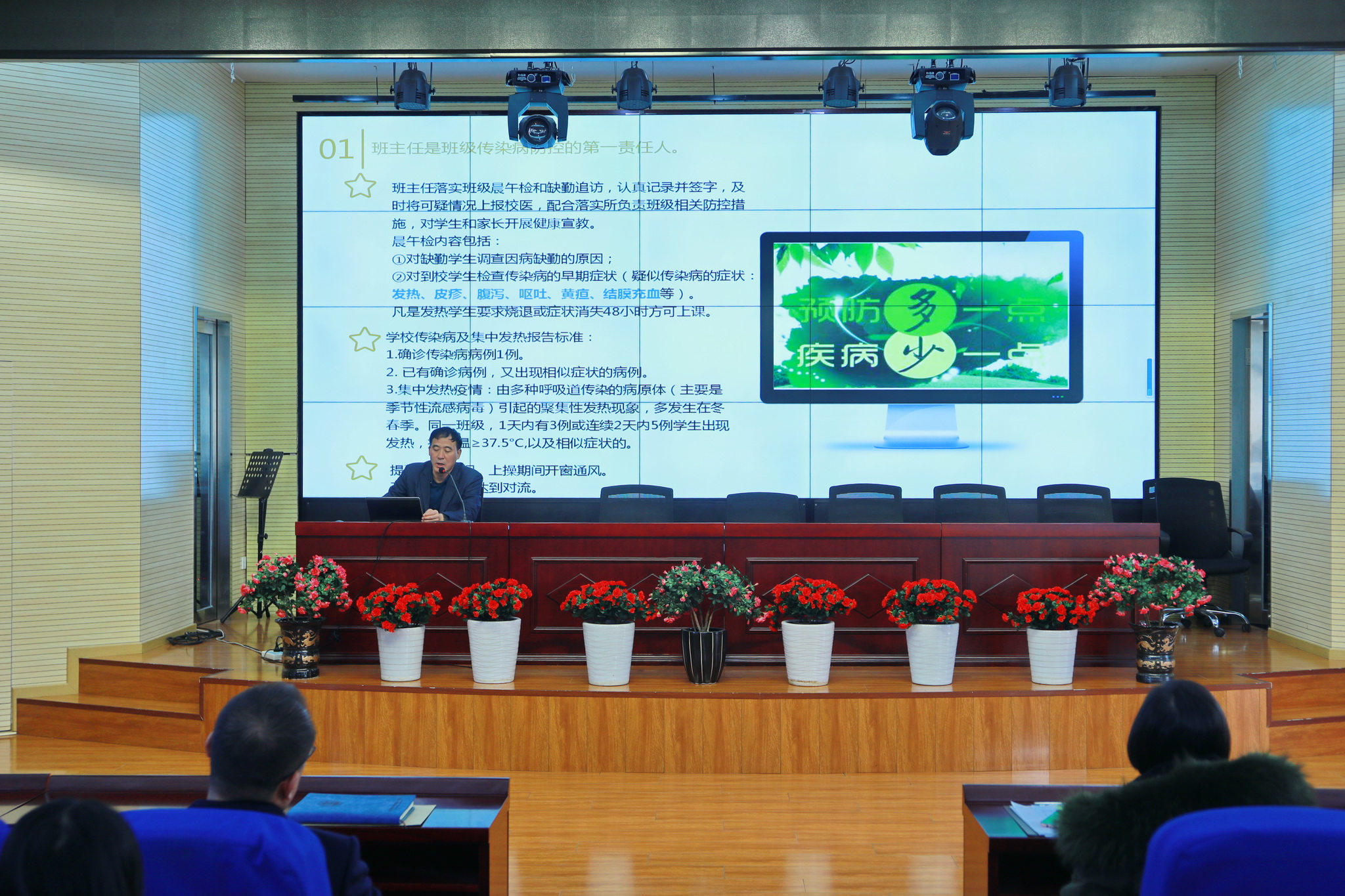 为增强学校教职工对传染病的防控意识,有效预防与控制冬季传染病的发生,保障师生身心健康,2019年11月19日,和平街一中和平街高中校区对全体教职工进行了冬季传染病防控培训。