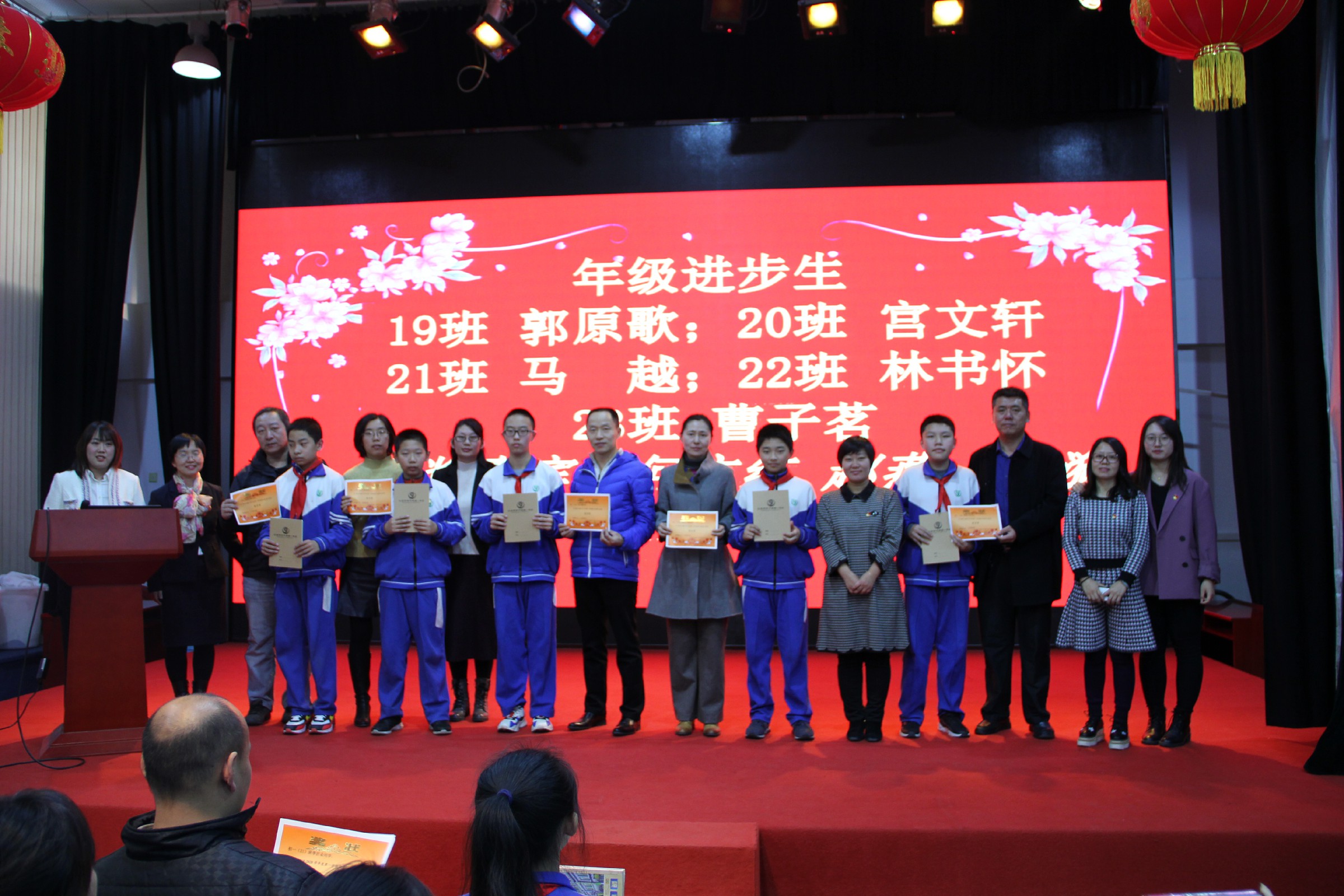 初一年级组长李雪松老师主持召开初一年级期中总结表彰会,班主任和任课教师为受表彰的同学和家长颁发奖状、奖品,家长和学生备受鼓舞。李老师还将开学以来开展的活动、学习生活、作业批准等一一向家长做了汇报。