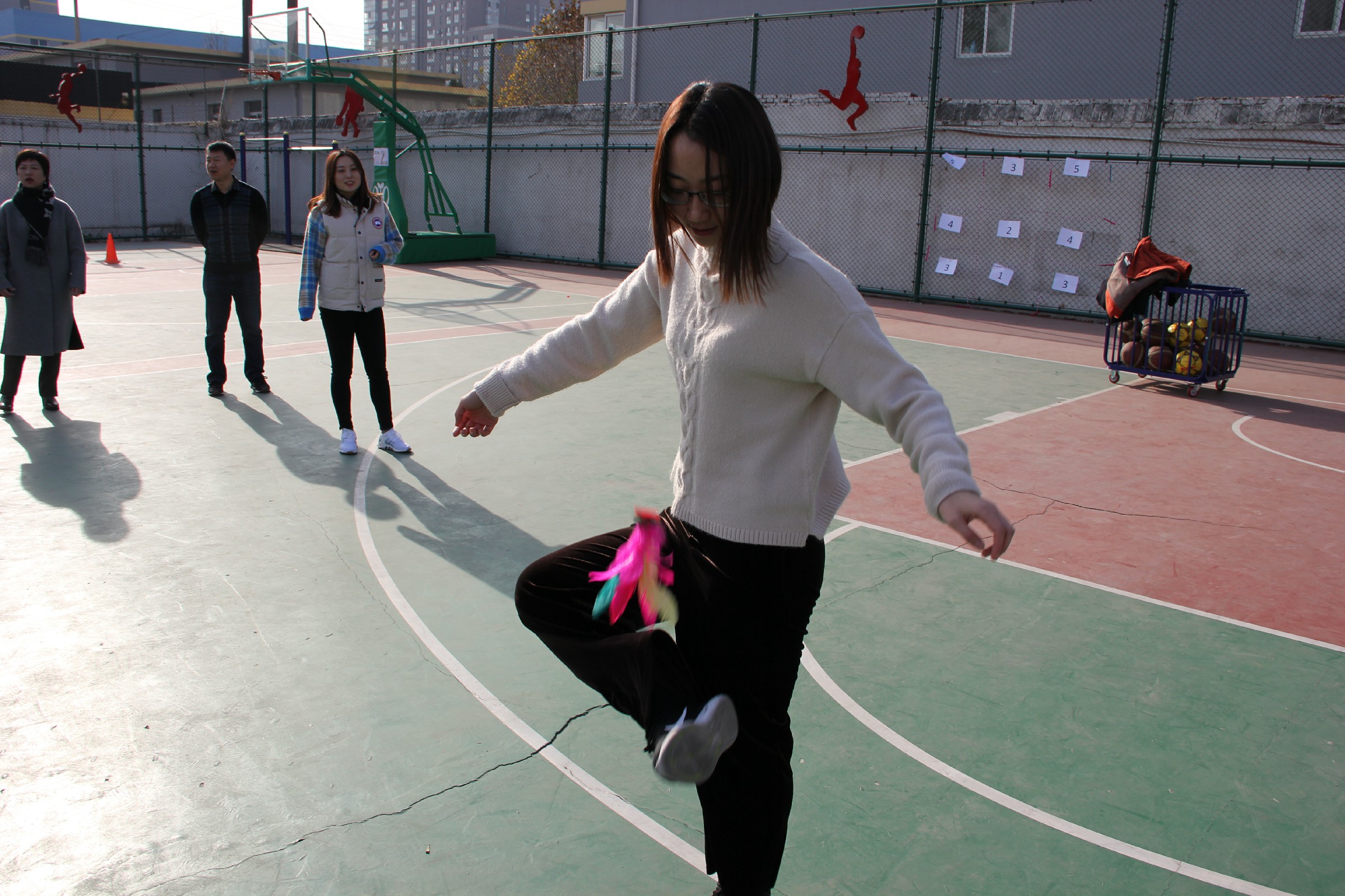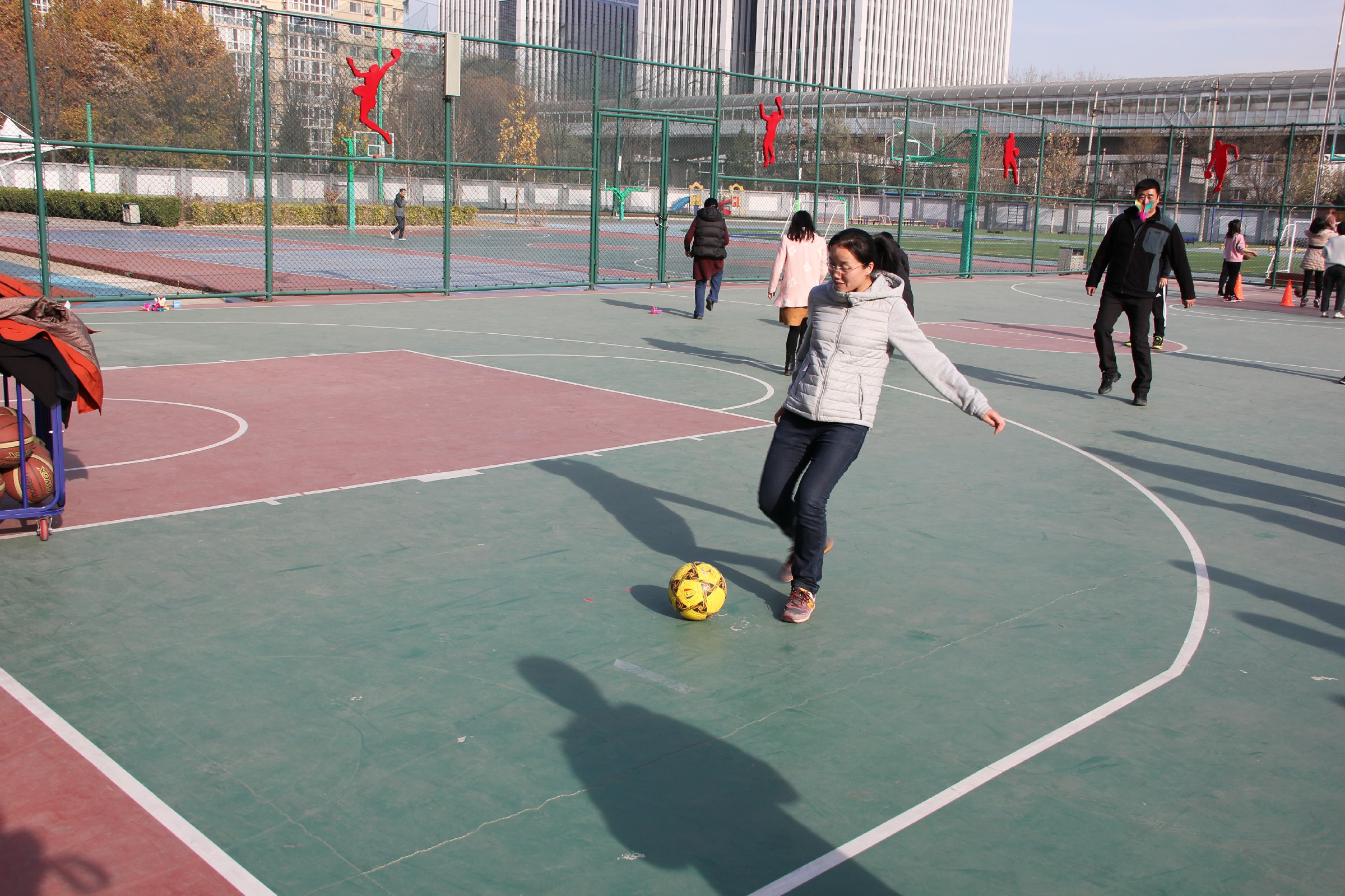 为了丰富教职工的校园文化生活,增进教师间的友谊,营造健康文明、积极向上的校园氛围,提高教师的身体素质,11月26日中午,和平街一中奥运村校区在操场举行了教工趣味运动会。
