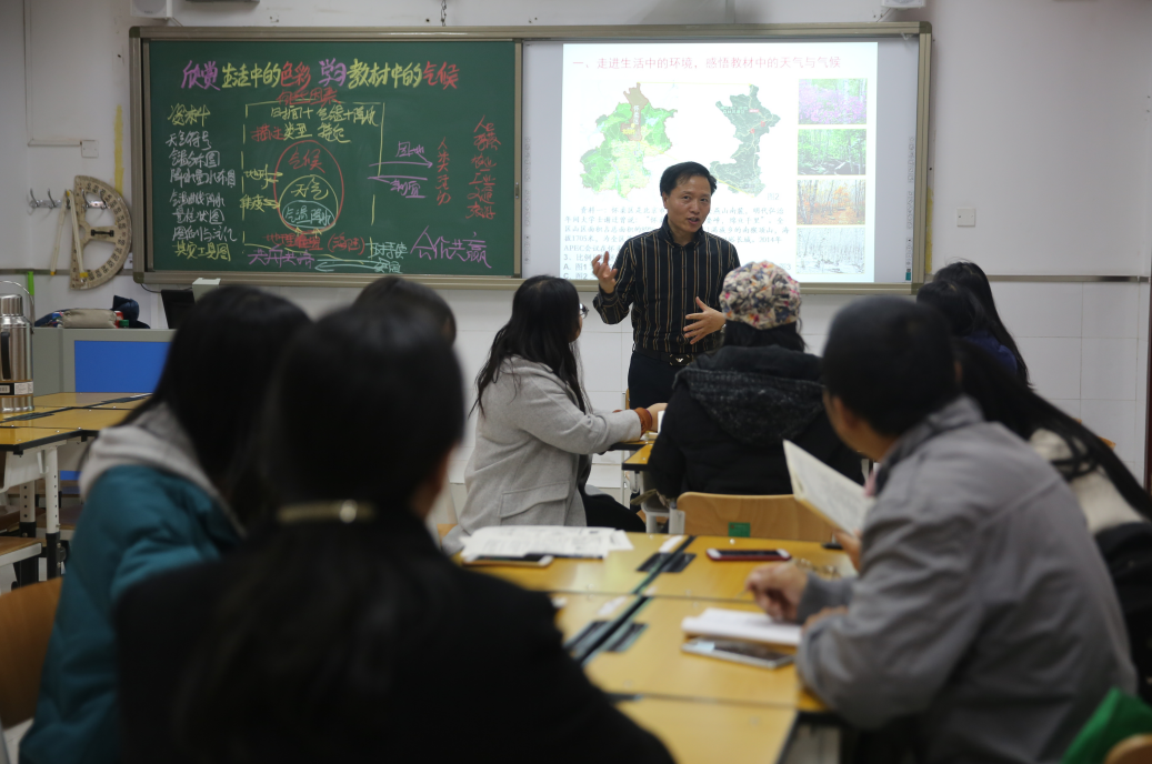 2019年11月25日下午第二节我校区李冬生老师为来自北京市远郊区县的10位教师奉献了一节地理学科的开放实践课《欣赏生活中的色彩 学习教材中的气候》。