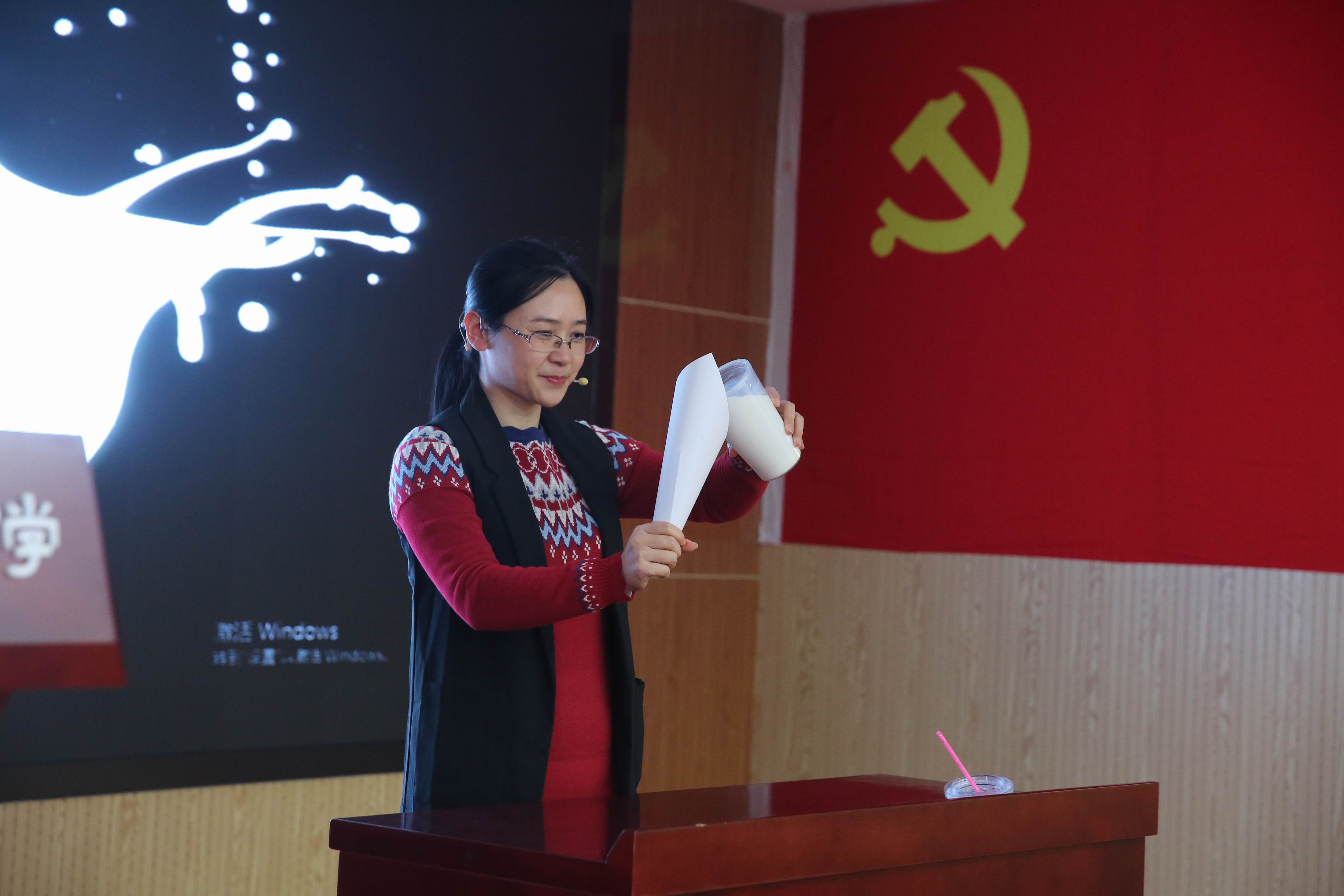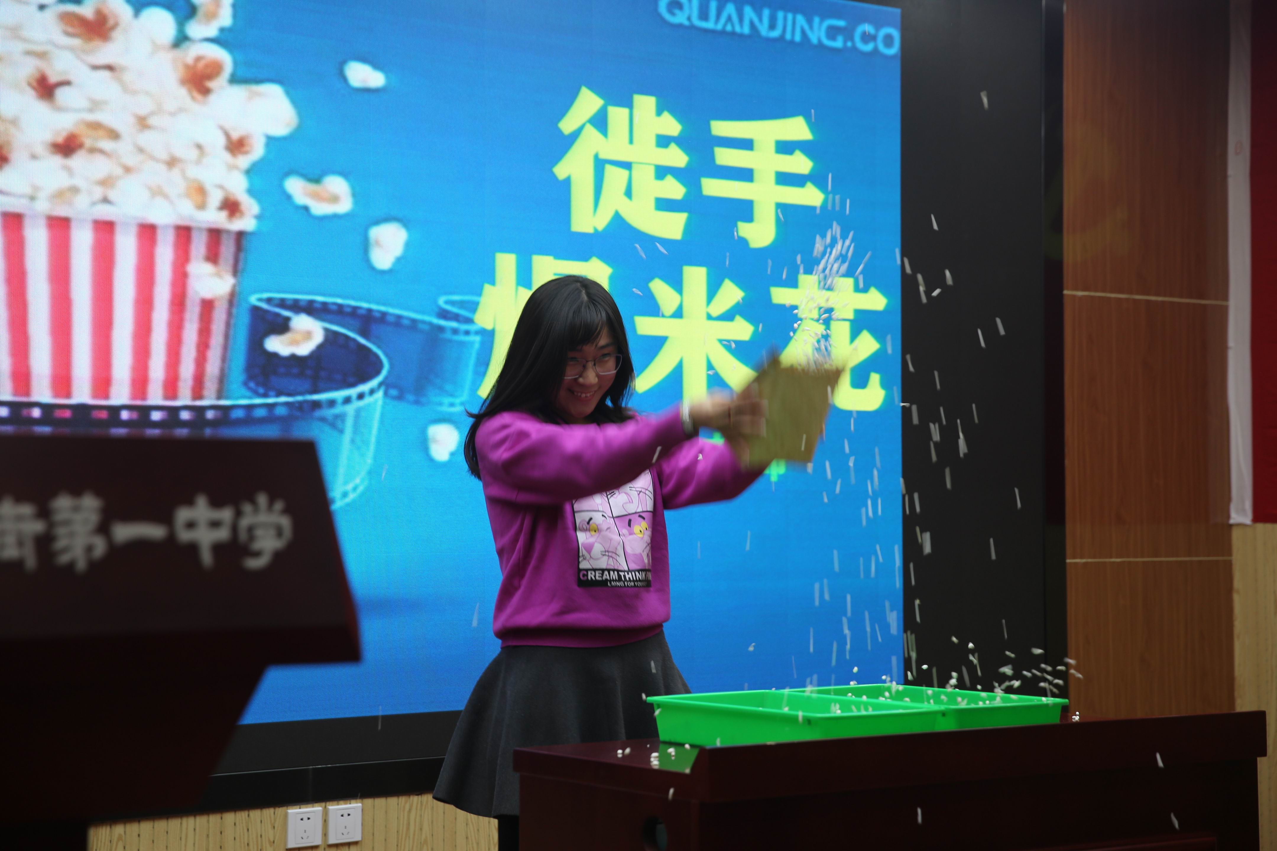 简单的舞台、形象的道具、引人入胜的情节,深深地吸引了学生们的眼球。李晶莹老师的“跳舞棒”、刘婕老师的“神奇的灯”、魏伟老师的“消失的牛奶”、王慧老师的“报纸那些事”、冯海娟老师的“听话的珠子”和闫妍老师的“徒手爆米花”给学生带来了欢乐,一个个伴随着物理学科奥秘的小魔术构成了一场美仑美奂的魔幻科学表演。最后压轴登场的魔术师是2014届毕业的和一校友苏子南,作为李晶莹老师的物理科代表,在和一求学期间由于热爱物理学科,利用课余时间钻研魔术。如今他把兴趣爱好发展成自己的一项专长和技能,活跃在北京魔术表演界。学生们随着师兄夸张的表情和精湛的演技,时而紧张、时而兴奋、时而欢呼。苏子南同学与学弟学妹们亲切的现场互动更平添了现场的热烈气氛,专业而精彩的表演赢得了学生们的阵阵掌声。