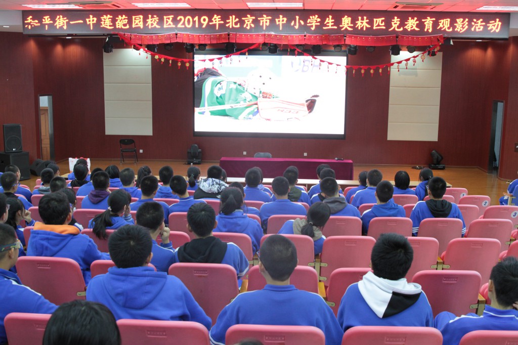 2019年11月22日,北京市和平街第一中学莲葩园校区开展了“走进冰雪项目,感受冬奥魅力”奥林匹克教育观影活动。高一高二年级全体学生参加了此次活动。