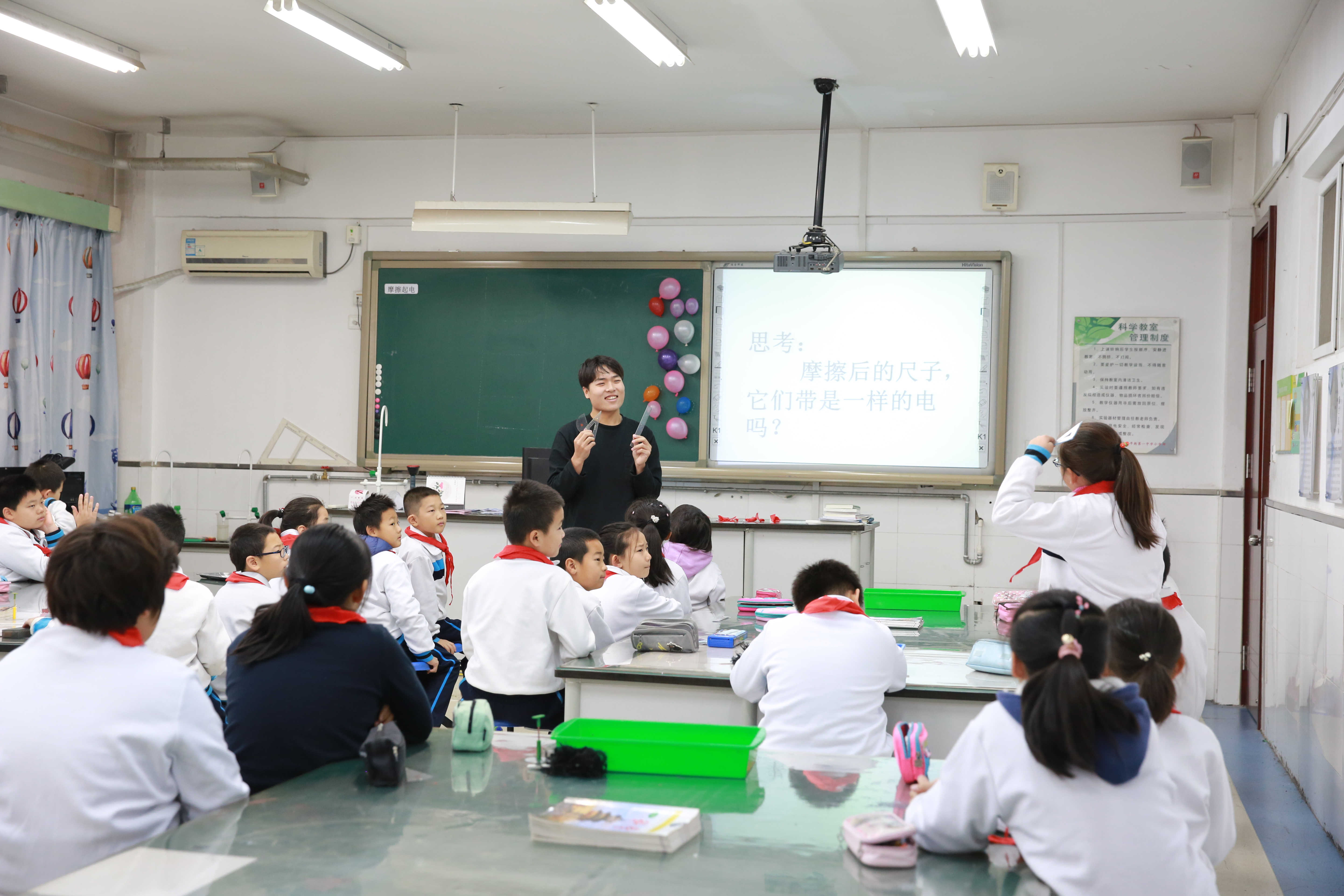 在听评课检查环节,校区推出低、高学段语文、数学4节课,英语2节课、道德与法制、科学、音乐学科各1节课,共9节常态课。分别是语文任梦露教师的《父爱之舟》、语文张英教师的《雪地里的小画家》、数学王笑教师的《平行四边形面积》、数学张利老师的《周长》、英语李雪丽教师的《Sports lover》、英语王艳星教师的《I have long arms》、道德与法制吕涛教师的《父母多爱我》、科学左佑教师的《正电和负电》以及音乐张紫楸教师的《调皮的小闹钟》的课堂,老师们将学科育德融入到课堂中,高质量完成教学任务。