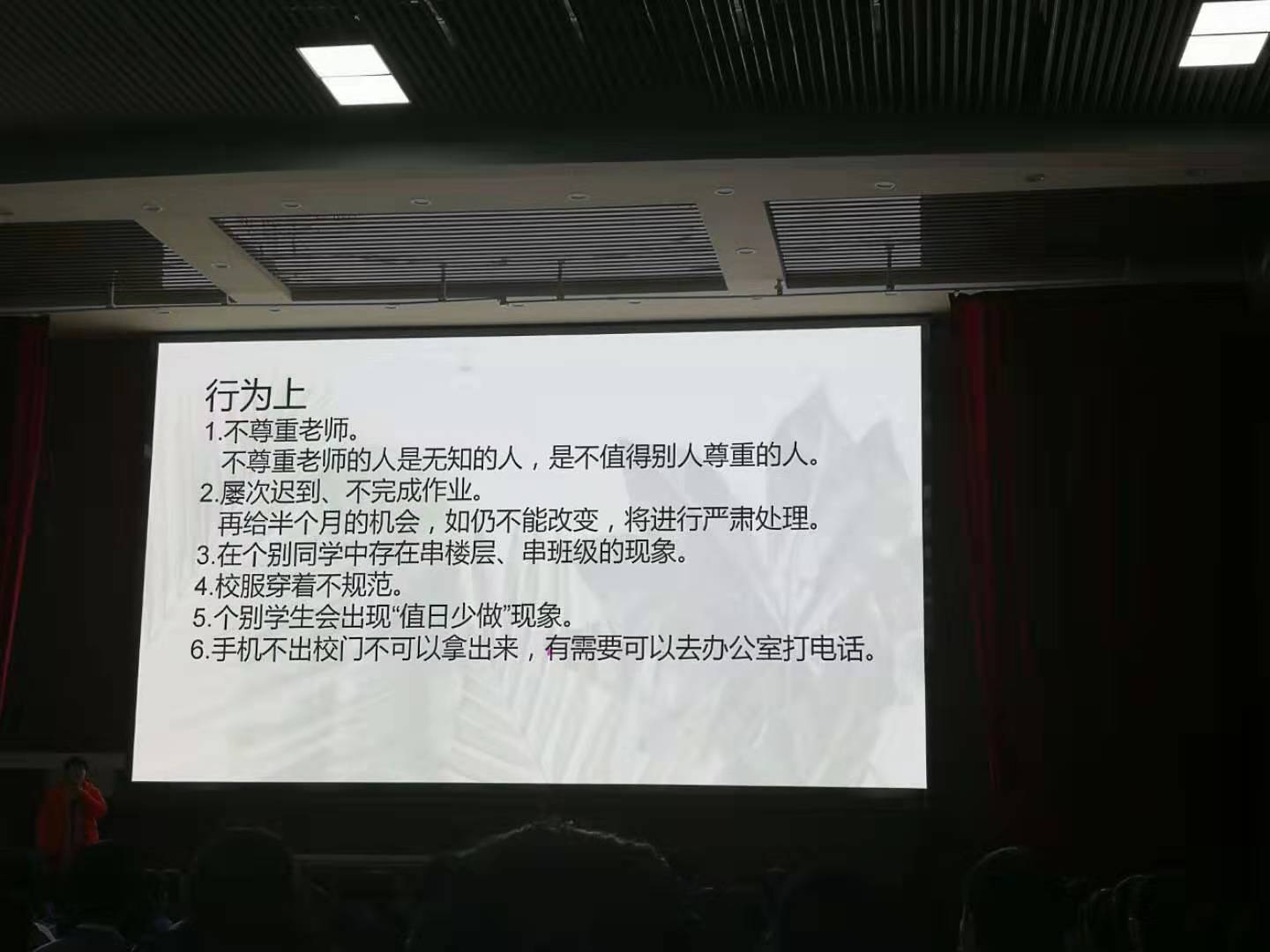 针对目前初一年级存在的一些问题,徐老师一面严肃指出,一面耐心指导,帮助同学们养成好习惯,为今后的学习生活铺平道路。“良好的开端是成功的一半”,初一年级全体学生认真听会,频频反思,感受到起始年级在习惯养成方面的重要性、增强了学习成长的自觉性和主动性。