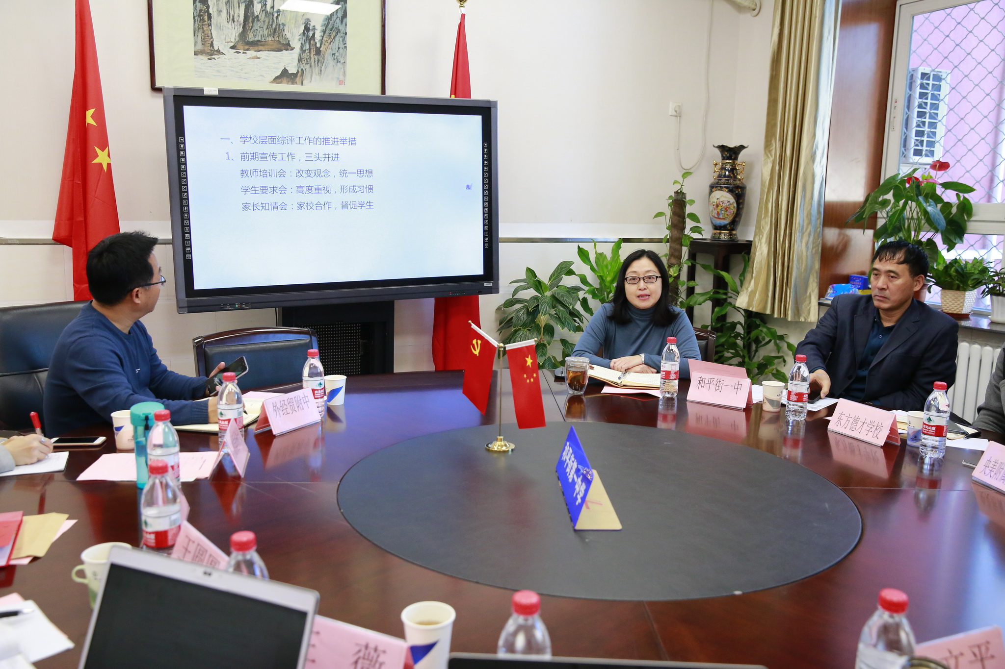 为了落实《教育部关于加强和改进普通高中学生综合素质评价的意见》、《北京市普通高中学生综合素质评价实施办法(试行)》相关文件精神,深入了解基层学校开展学生综合素质评价工作的进展情况。2019年12月3日下午,北京市综合素质评价研究调研会在和平街一中和平街高中校区进行。北京市综合素质评价研究项目团队专家杜文平、王薇、曹飞、邢利红,朝阳区教委基教二科王圆圆老师,朝阳区教科所陆志望老师,云南省昆明市嵩明县跟岗教师李凤米,东方德才学校、央美附属实验学校等七所兄弟学校的老师及和平街高中校区主管副校长曹成勇、学生发展处主任卢岩参加了会议。