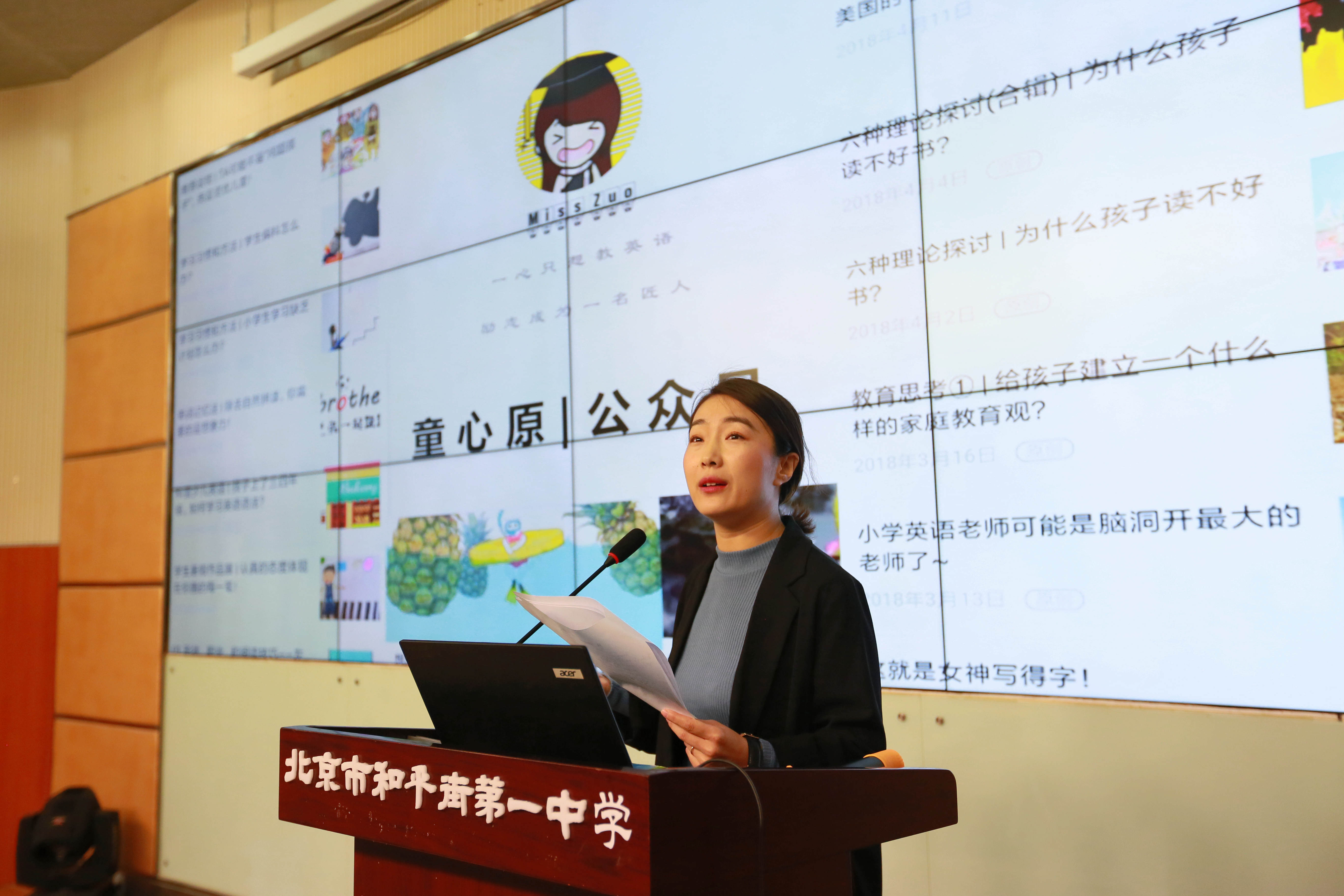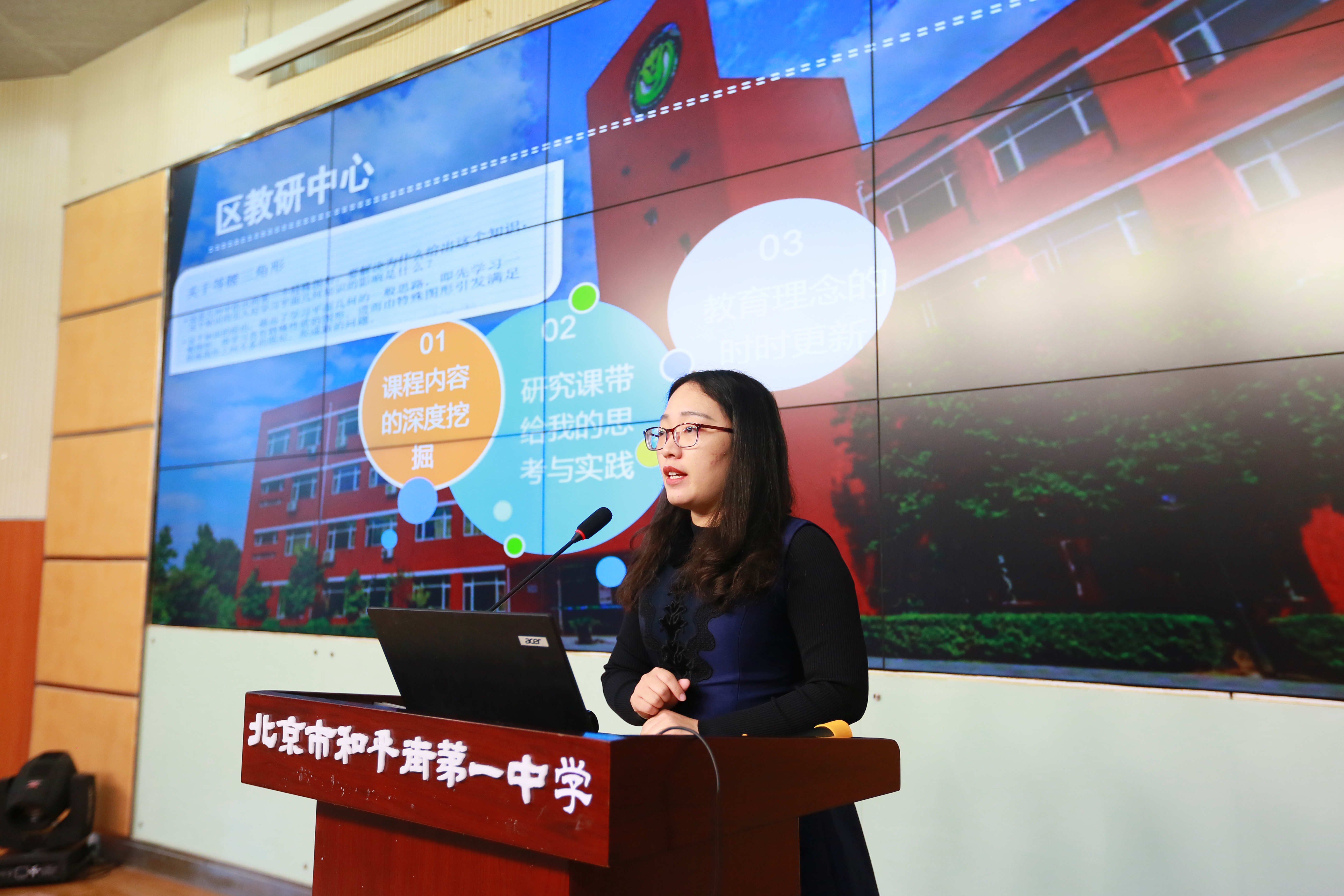 为展示学区教研实践成果,两位教师分别代表小学和初中分享了教研成长经验。第一位是来自北京景山学校朝阳学校的左惠连,左老师以《从假繁荣到真课堂》为题,介绍了在她职业成长过程中面对三次焦虑时,来自学校、教研中心和学区三方教研对她的引领和帮助,实现了从假繁荣到真课堂的转变;第二位是来自北京市和平街一中朝来校区吝孟蔚,吝老师以《借力前行,为成长做乘法》为题,讲述了参加工作以来,学校、教研中心和学区开展的教研活动使她成倍成长,使她成为了一名研究型教师。研讨交流分享在教师认真的聆听中结束。